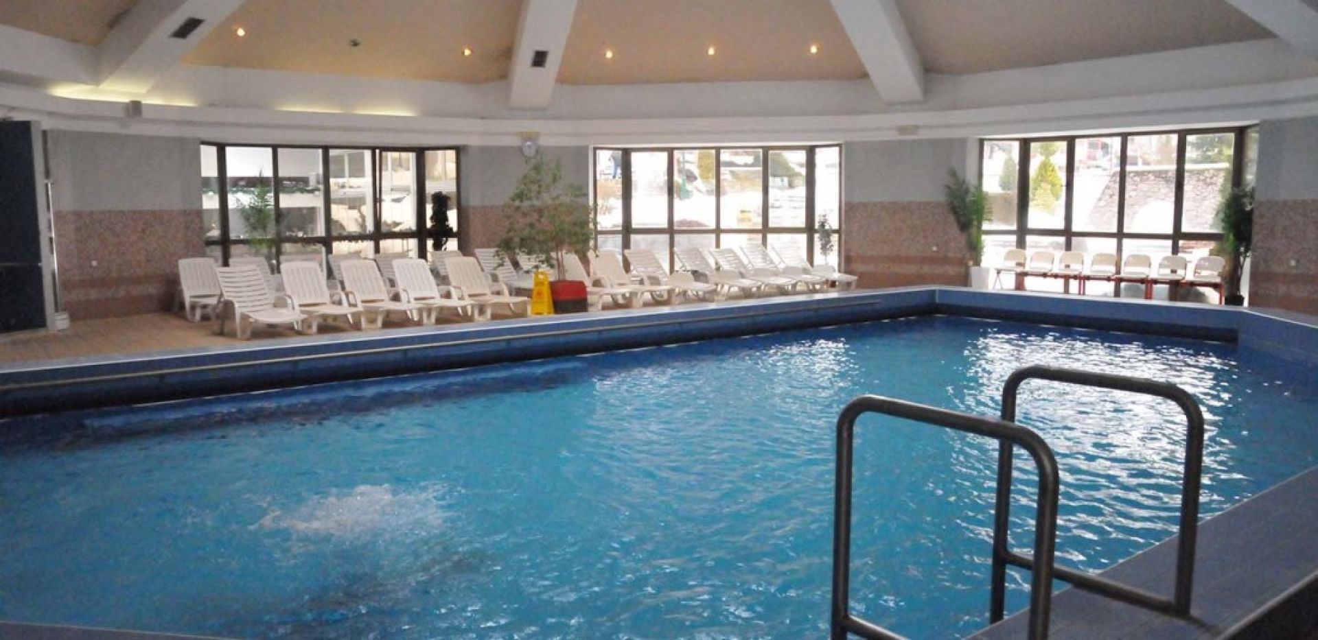 СПА център: Уелнес центърът на хотела предлага вътрешен и външен басейн, сауна, парна баня, джакузи, тепидариум - топло помещение с подово отопление и подгреваеми седалки, солна стая.