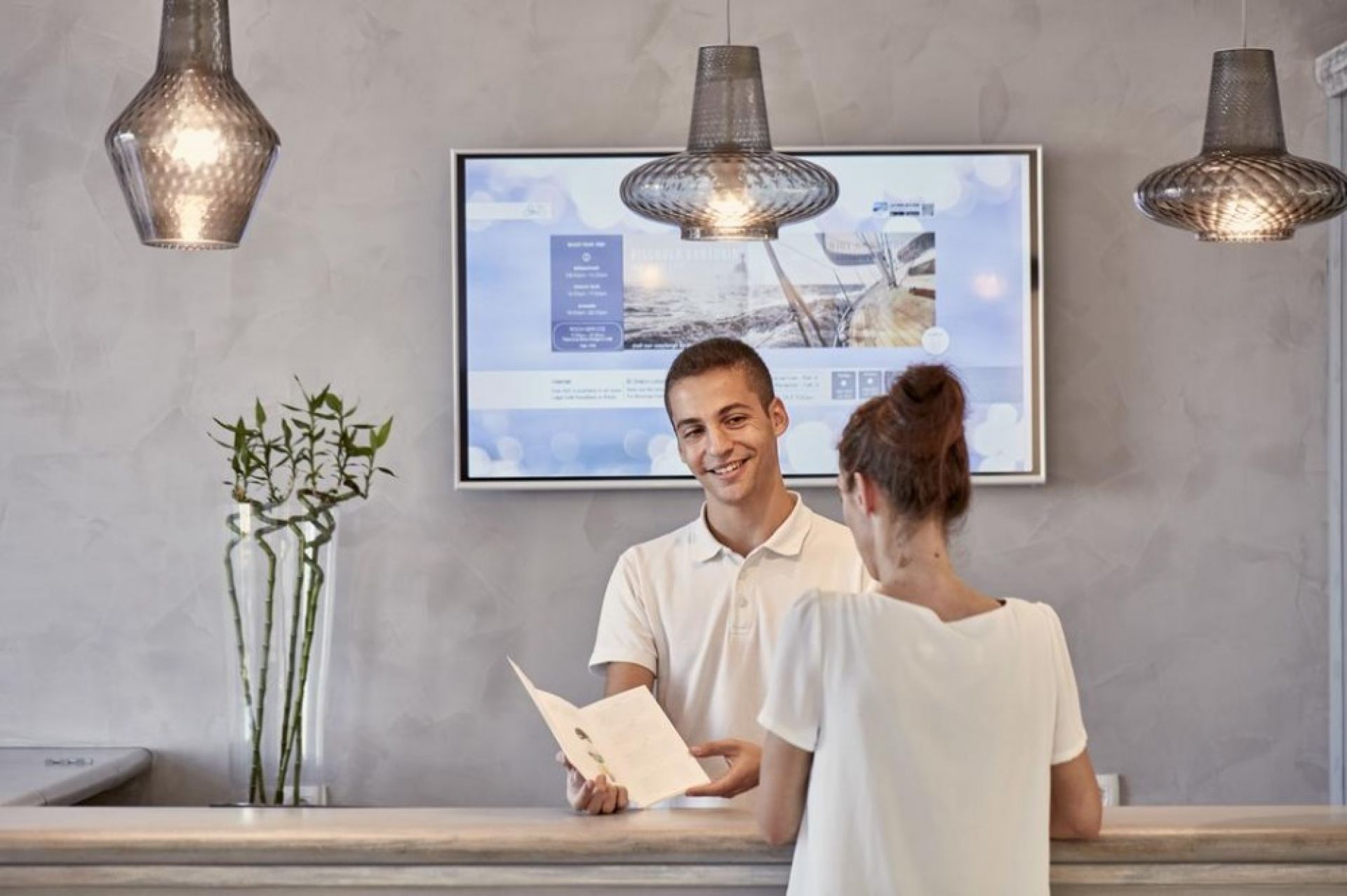 Основен ресторант, бар на басейна, снек бар, 5 басейна, 2 открити джакузита, СПА център, фитнес, ТВ кът, конферентна зала, коли под наем, интернет, лекар (на повикване), услуги пране и гладене, паркинг, безплатен Wi-Fi на територията на хотела. За децата: детски басейн. Плаж: На 15 км. от плаж Камари, на 7 км. от плаж Монолитос, на 14 км. от плаж Периса.