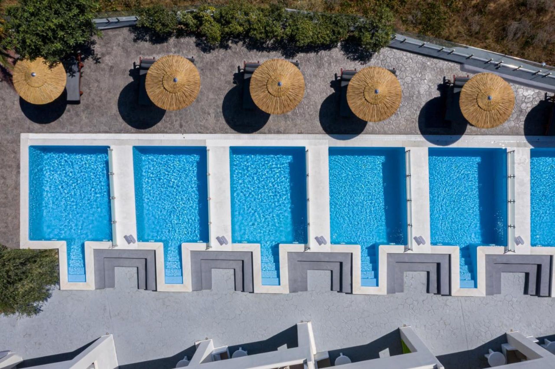 Хотелът се намира на 7 км от летището, на 12 км. от селището Иа, на 9 км. от пристанището, в живописния Фиростефани, на пешеходно разстояние от центъра на столицата Фира. Хотелски комплекс Splendour Resort предлага елегантни 5-звездни помещения за настаняване с изглед към Егейско море.