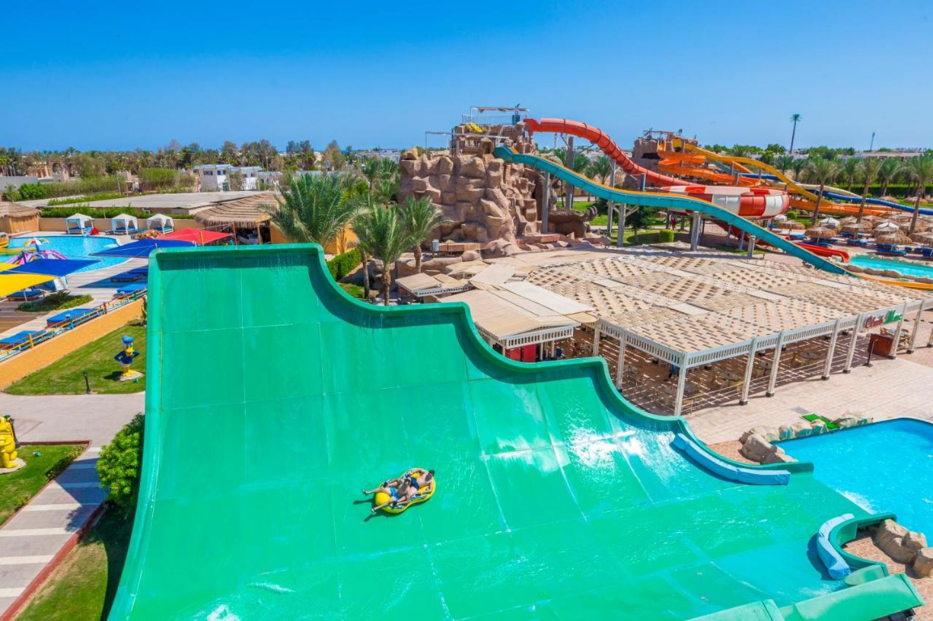 За децата: 10 детски басейна, водни пързалки, детски клуб, мини диско, детска площадка, бебешка кошара, детегледачка (срещу заплащане)