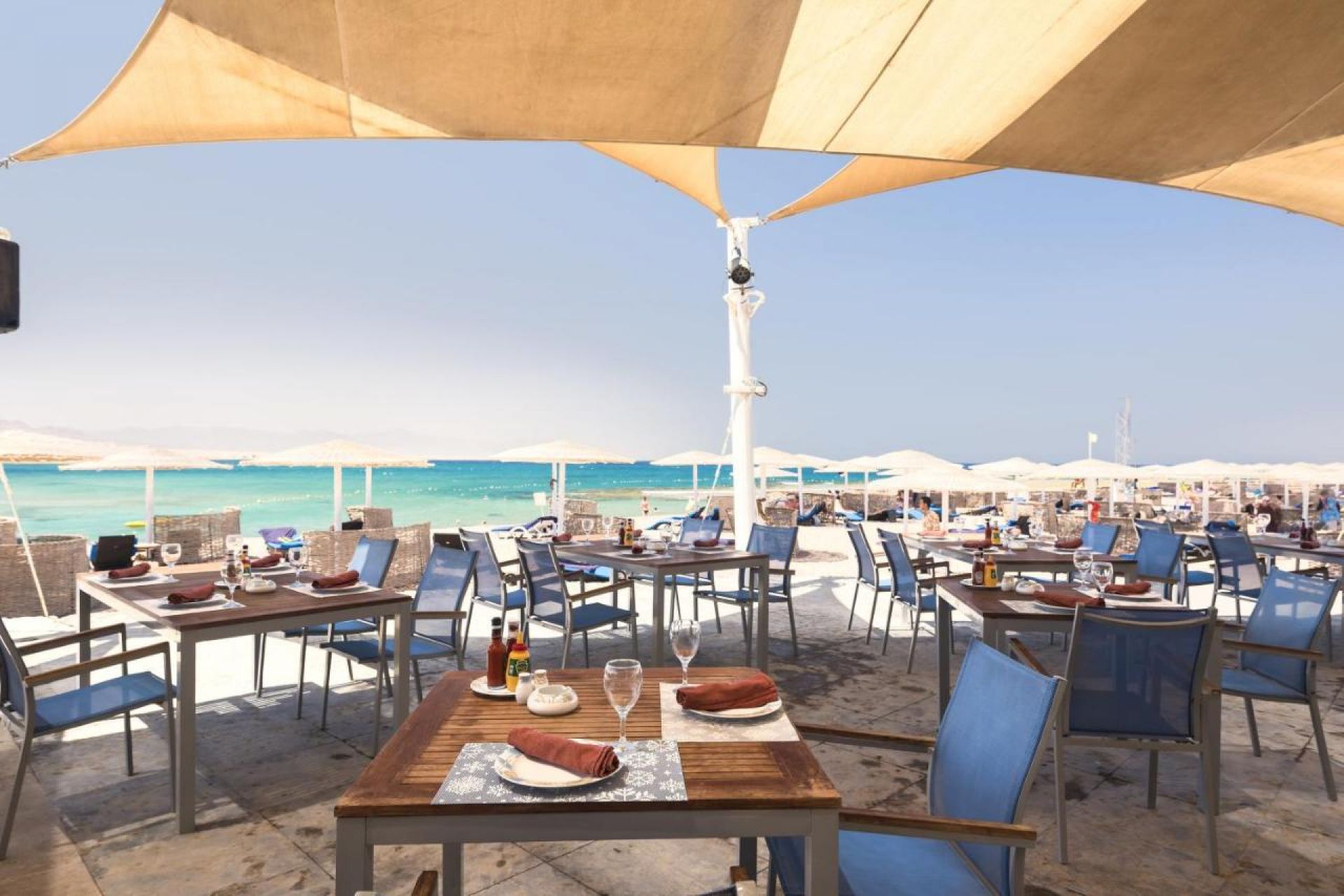Собствен, пясъчен с дължина от 800 м, коралов риф. Чадъри и шезлонги на плажа и при басейна - безплатно. Плажни кърпи - безплатно.