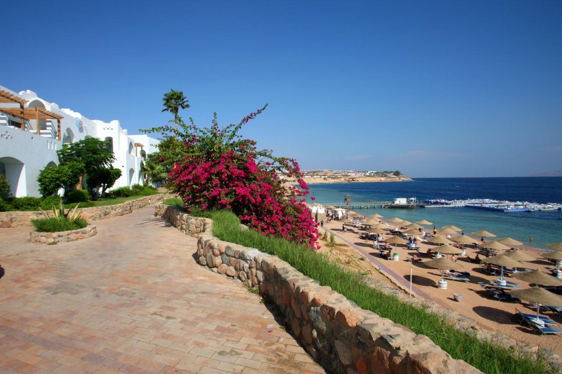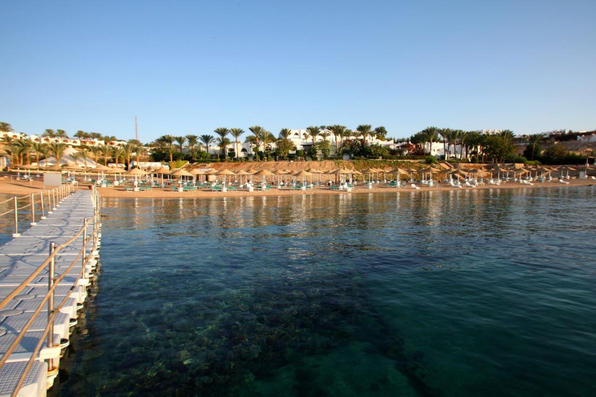 Собствен, пясъчен коралов плаж, кей. Чадъри, шезлонги, плажни кърпи на плажа и при басейна - безплатно.