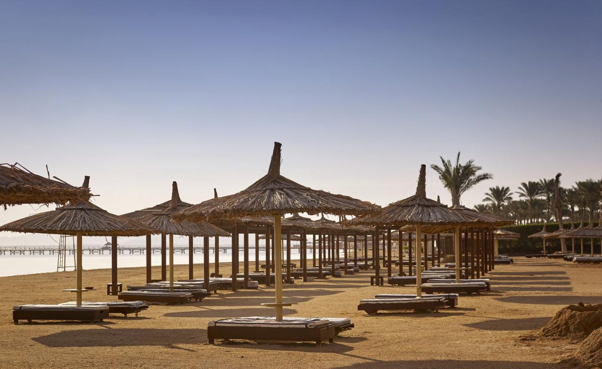 Собствен, пясъчен с дължина 350 м, кей. Чадъри, шезлонги и плажни кърпи на плажа и при басейна – безплатно.