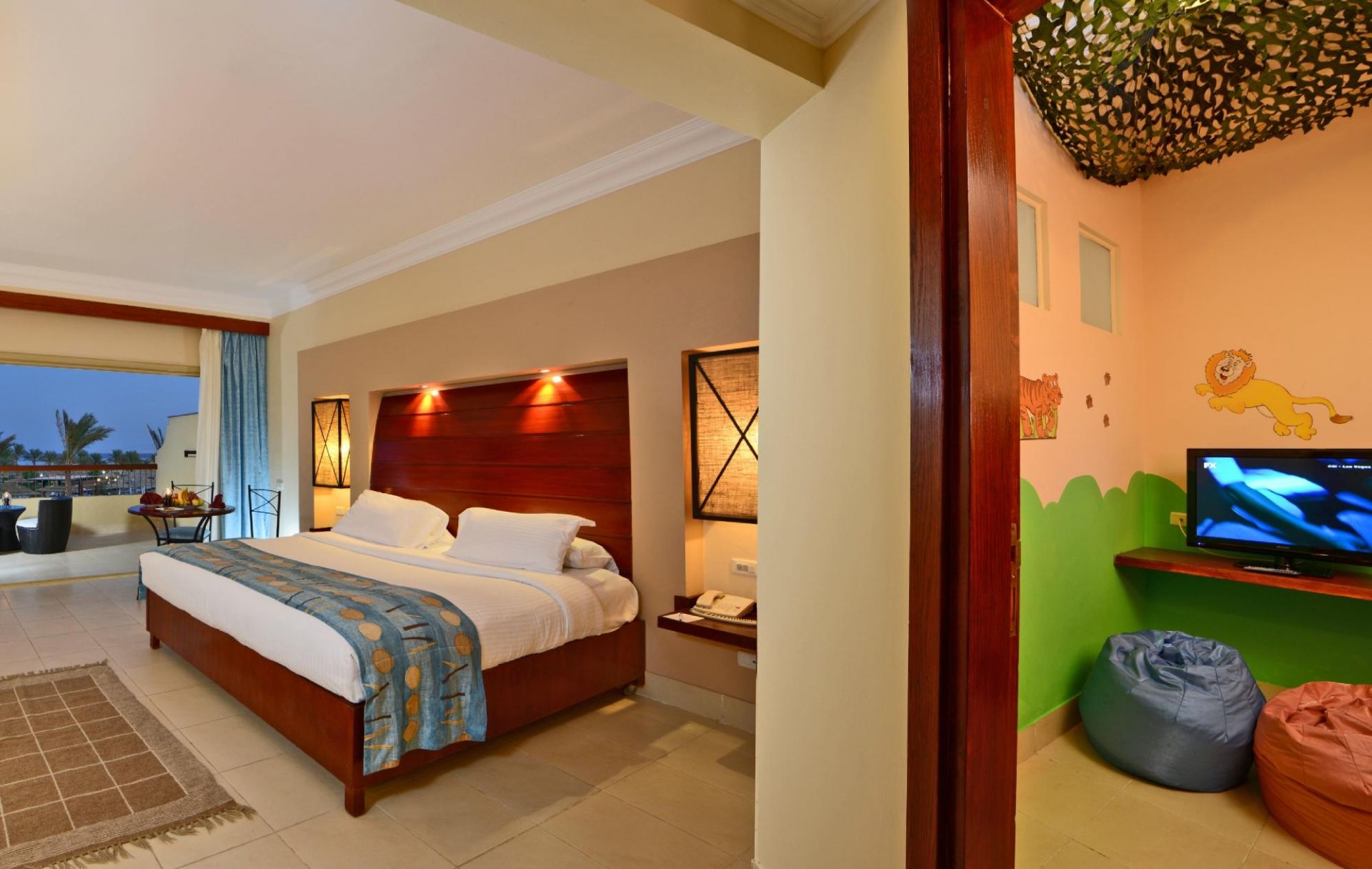 Хотелът разполага с общо 484 стаи, от които 149 Standard Room (38 кв.м), 76 Swim Up Room (с излаз към басейна 40-44 кв.м), 131 Hotel Family Room (2 спални, 2 дивана, отделени с врата и 1 баня – 45 кв.м), 36 Kids Den (спалня + двуетажно легло, 1 баня - 50 кв.м), 20 Jacuzi Room (1 спалня + джакузи – 38 кв.м), 8 Jacuzi Suite (с джакузи – 45- 47 кв.м).