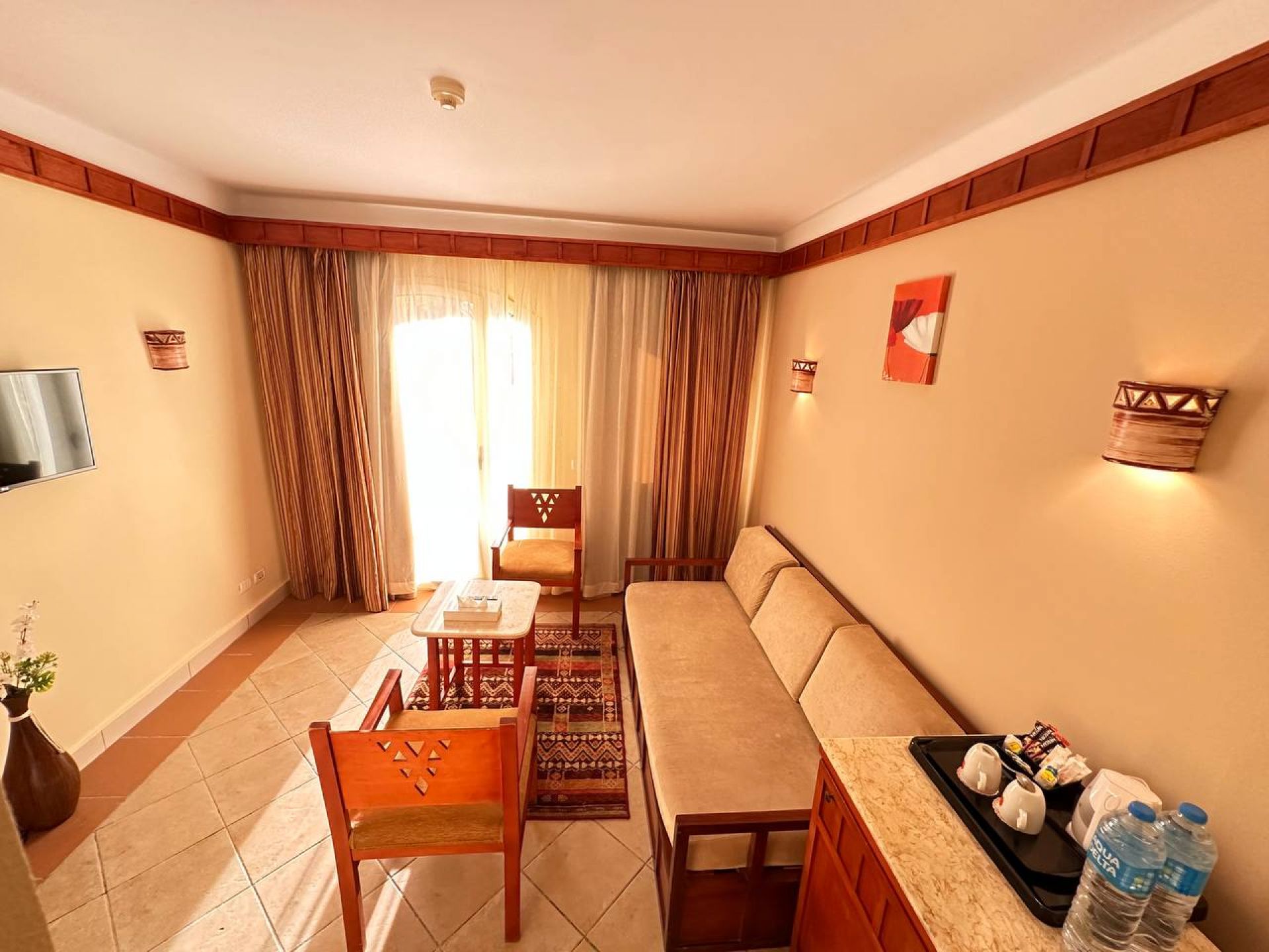 Всички стаи са оборудвани с климатик, телевизор, телефон, баня с душ, сешоар, сет за чай/кафе, минибар, сейф, балкон или тераса. Почистване на стаите и смяна на кърпите – всеки ден, смяна на спалното бельо – 2 пъти в седмицата.