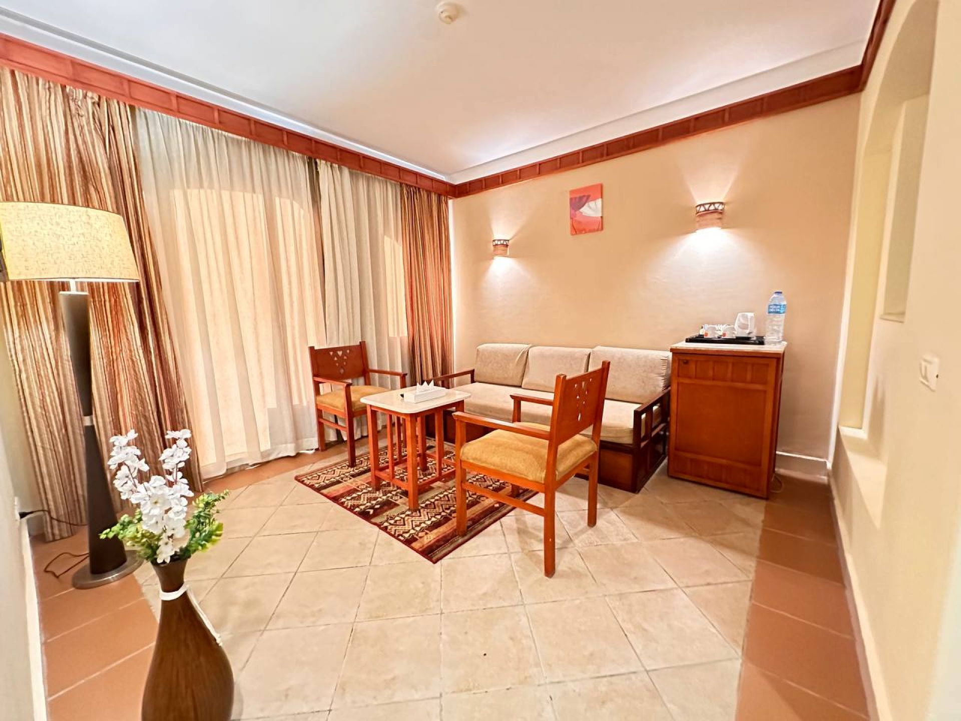 Хотелът разполага с общо 48 стаи, от които 606 разположени в 5-етажна основна сграда - Standard Garden View (32 м2), Standard Pool View (32 м2), Standard Swim Up (с излаз към басейна -32 м2).