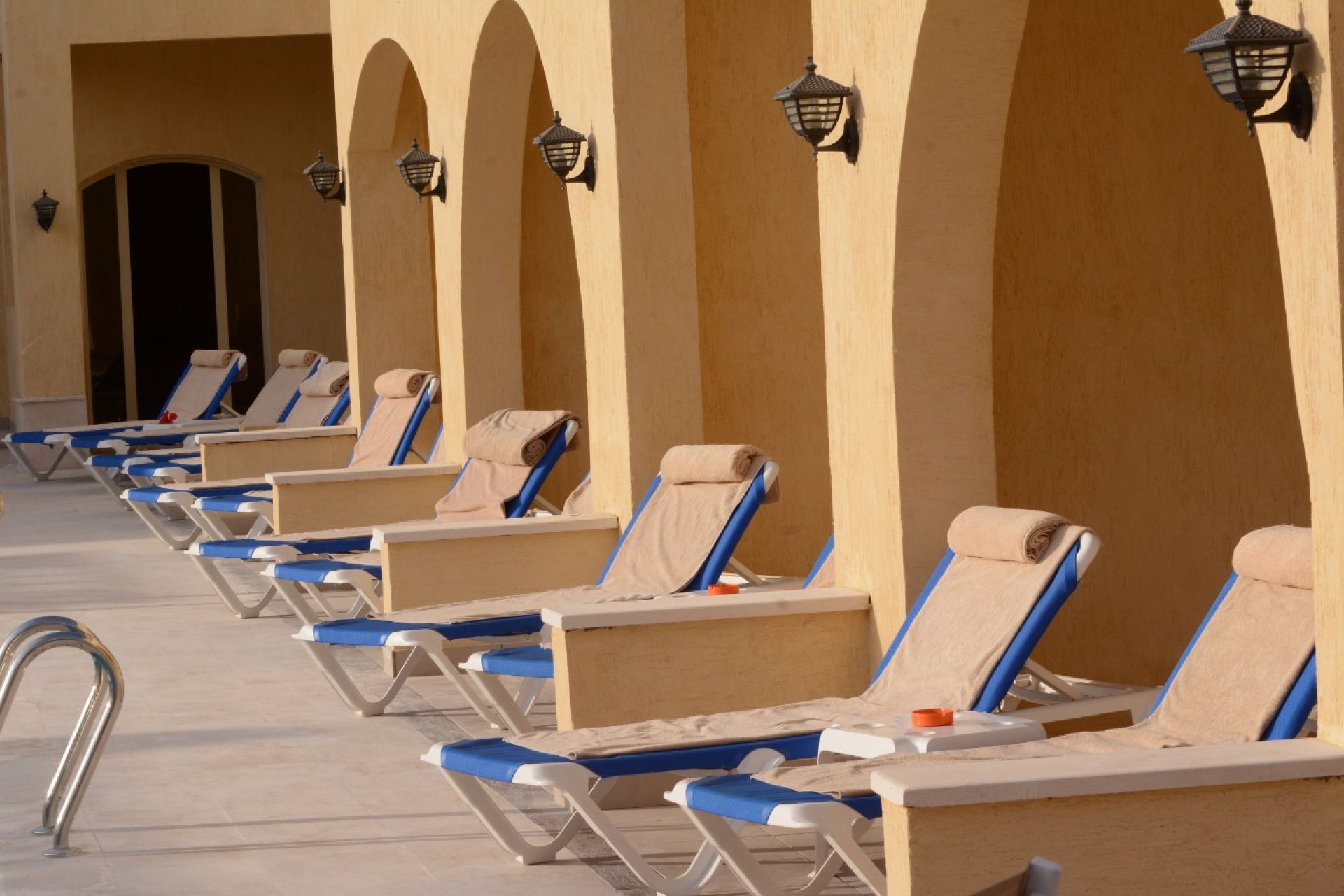 Собствен, пясъчен. Чадъри, шезлонги и плажни кърпи на плажа и при басейна - безплатно.