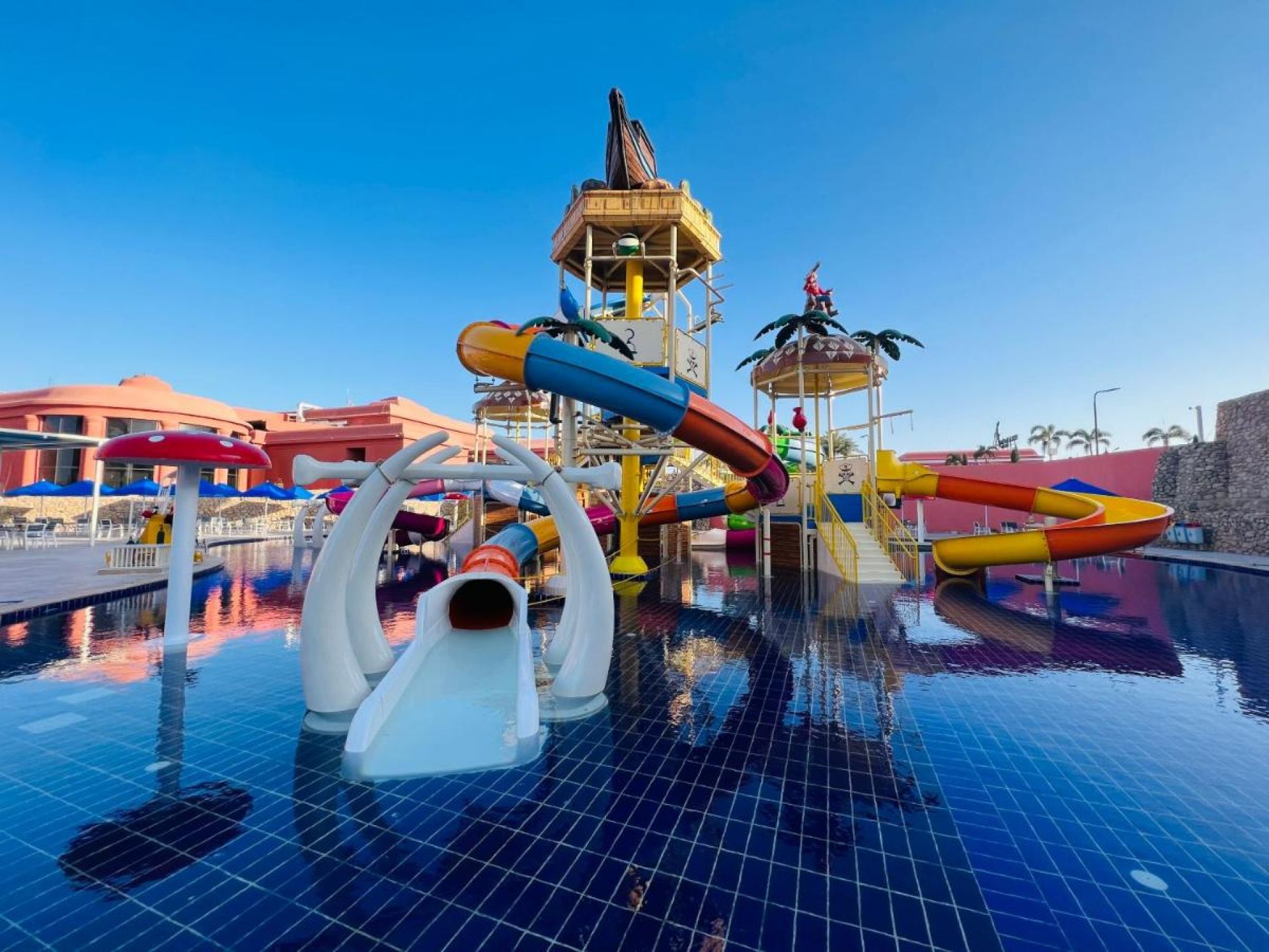 Три основни ресторанта, 1 а-ла-карт ресторант (италиански - срещу заплащане/с предварителна резервация, съгласно концепцията на хотела/1 безплатно посещение при минимум 7 нощувки), 8 бара, 11 открити басейна, амфитеатър, анимация, аквапарк с 8 пързалки за възрастни, СПА център.