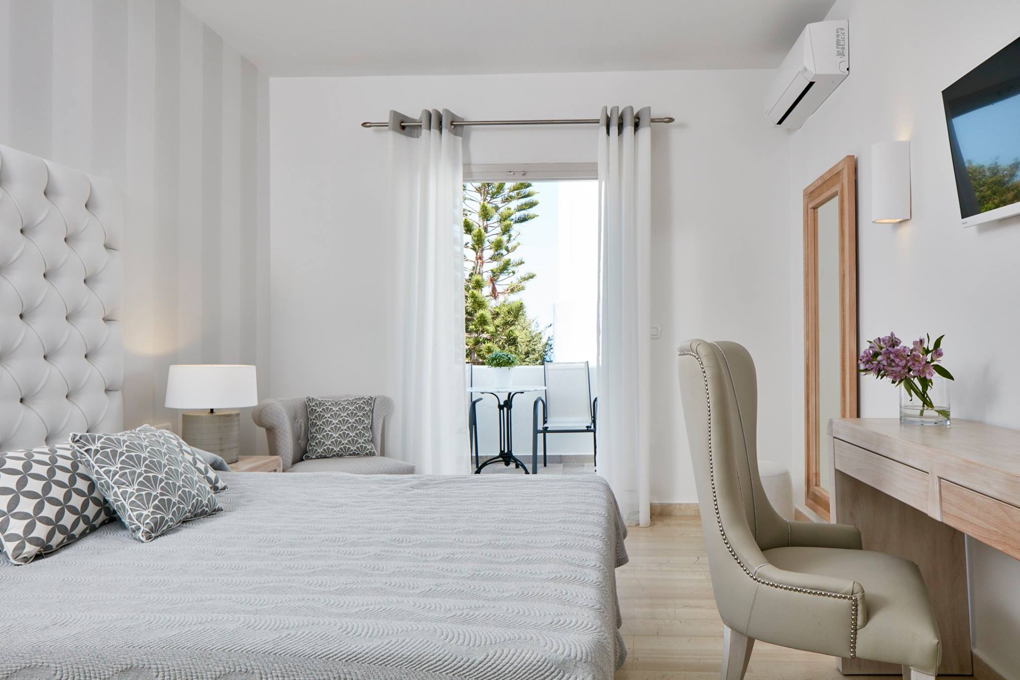 Хотелът: предлага басейн и фитнес център с хидромасажна вана и сауна. Всички климатизирани стаи се отварят към балкон с изглед към добре поддържаната градина или Егейско море. Всяка е оборудвана със сателитна телевизия, минибар, баня с душ тип тропически дъжд или вана и сешоар. В целия хотел има безплатен Wi-Fi интернет.