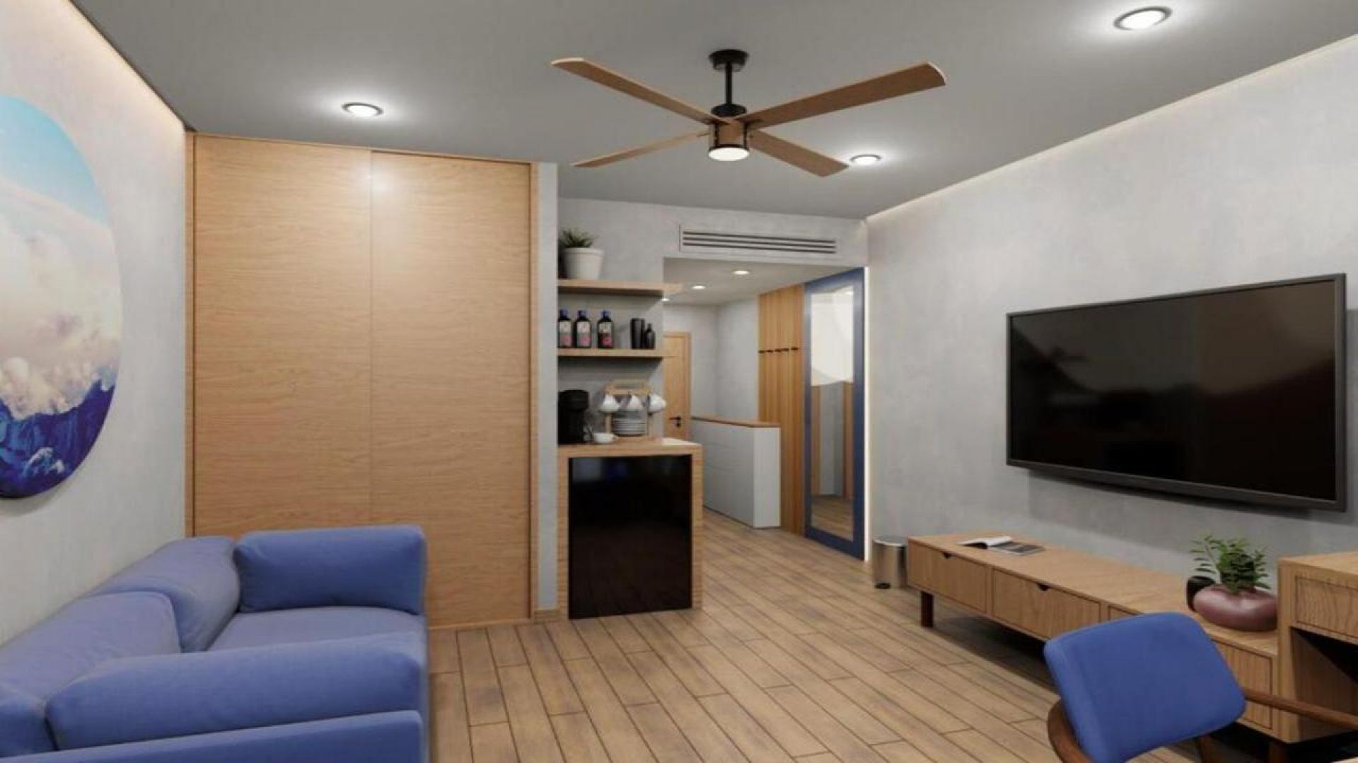 Приблизителна площ на апартамента - около 42 кв.м, отделно пространство за спане на деца, две спални. Разполага с телефон, сателитна телевизия, сешоар, сейф, мини бар - срещу допълнително заплащане, електрическа кана с чай и кафе, климатик, баня с тоалетна и тераса.