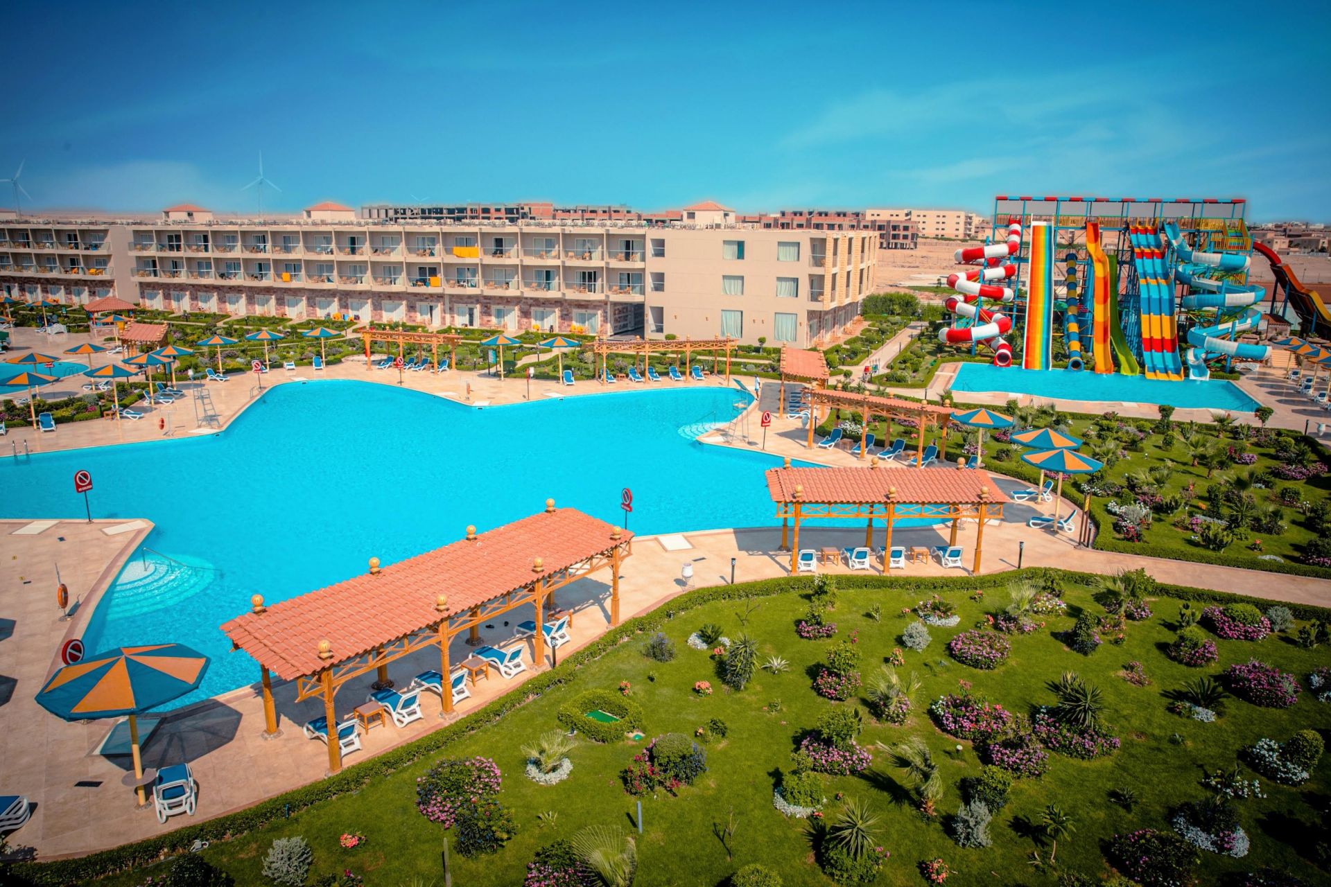 За децата: аквапарк с 14 пързалки, мини клуб (5-12).