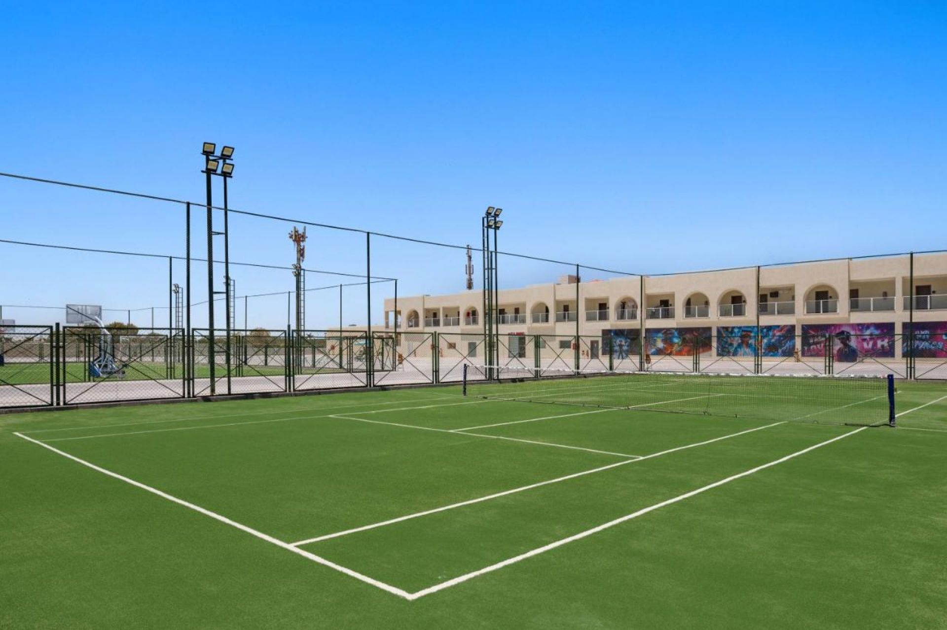 Собствен, пясъчен с дължина 600 м., коралов риф за гмуркане и кей.