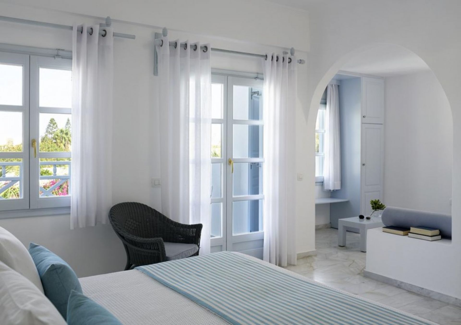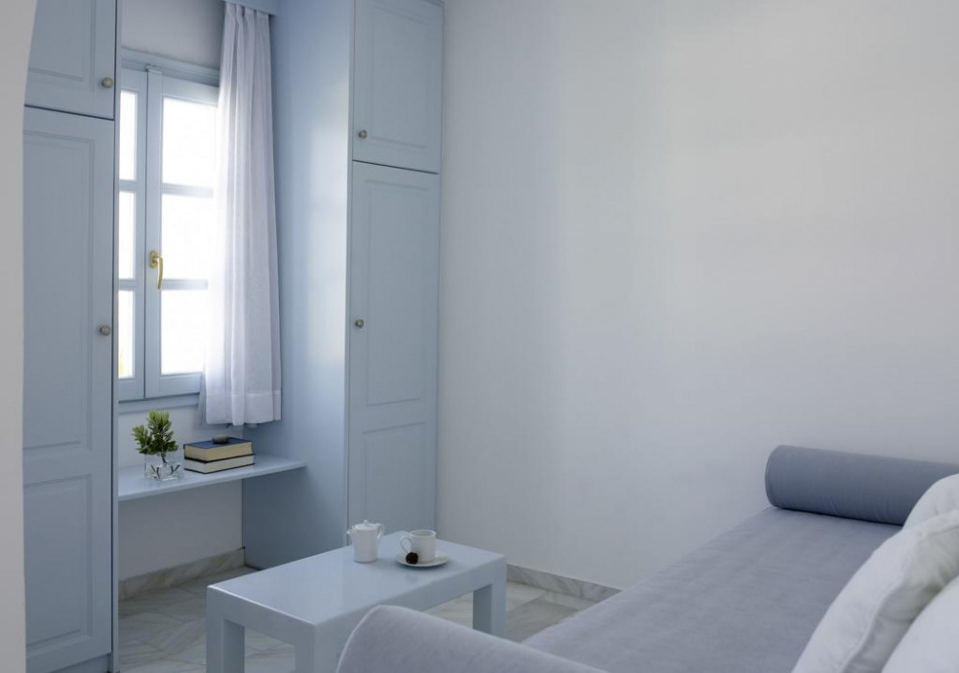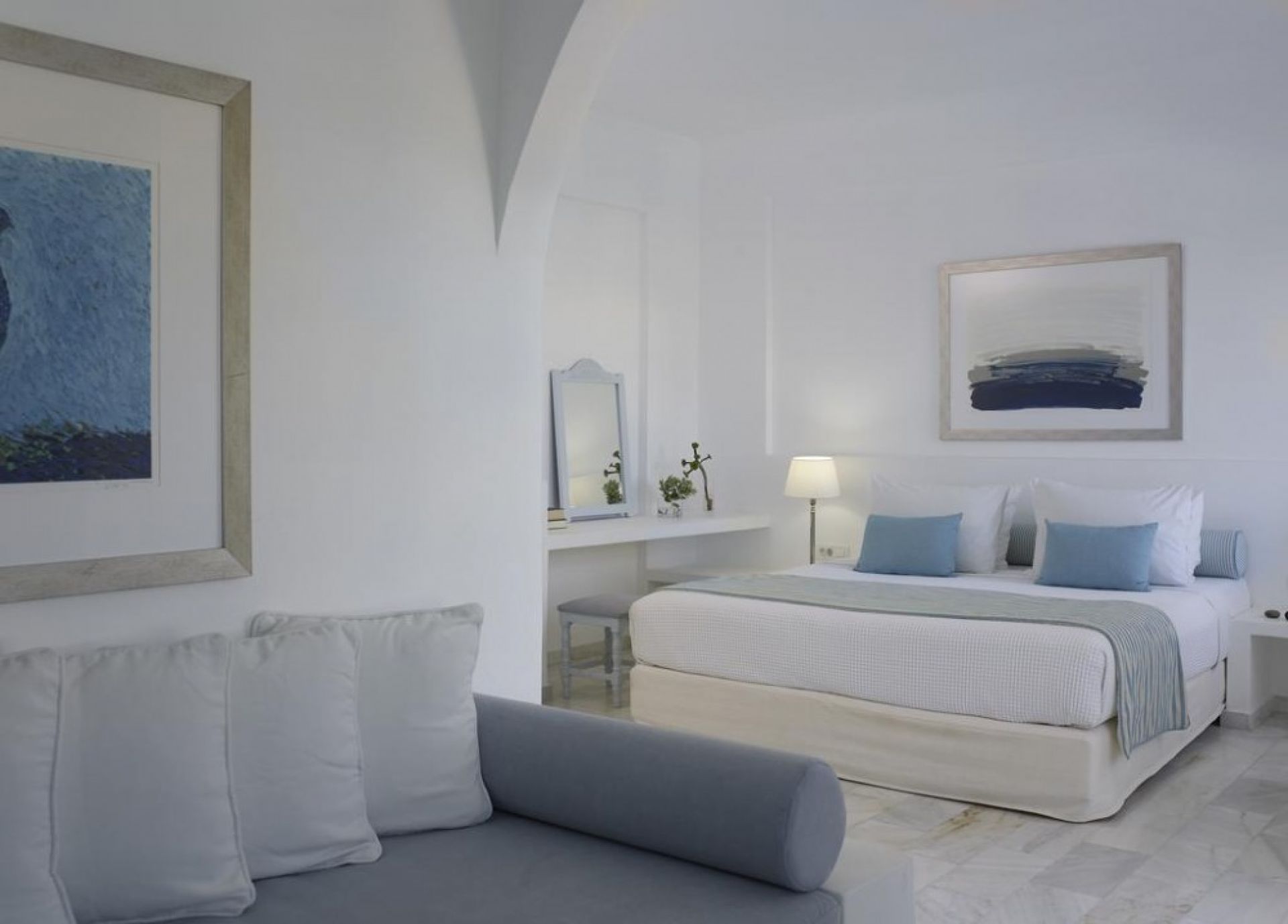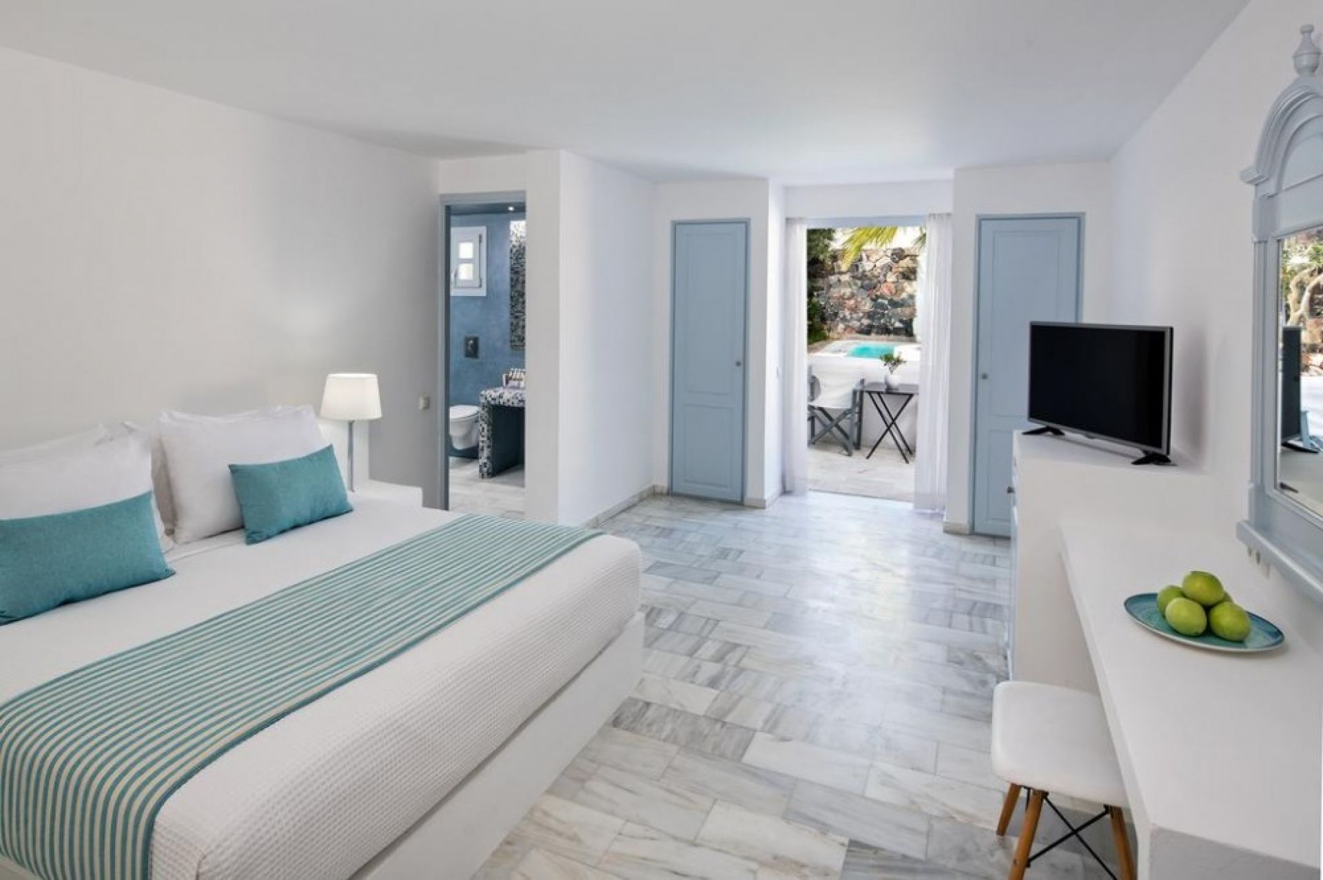 Хотелът се намира на 4 км от международното летище Санторини, на 10 км от пристанище Athinios, на 10 км от столицата Фира, в селището Камари, на 80 м. от брега на морето. Великолепно усамотен сред голяма градина, в непосредствена близост до известния вулканичен черен пясъчен плаж на Камари и центъра на древния град Тира. Хотелът предлага изключителна атмосфера на лукс, уют и спокойствие. Построен в традиционен егейско-цикладски стил.