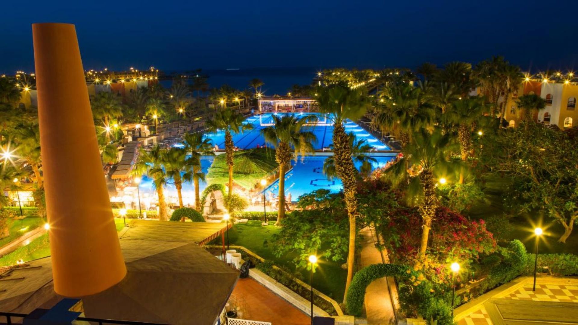 Основен ресторант, 2 а- ла карт ресторантa (срещу заплащане), 2 бара, дискотека, 2 открити басейна (един от които с морска вода и отопляем през зимния сезон), СПА център, магазини, конферентни зали.
