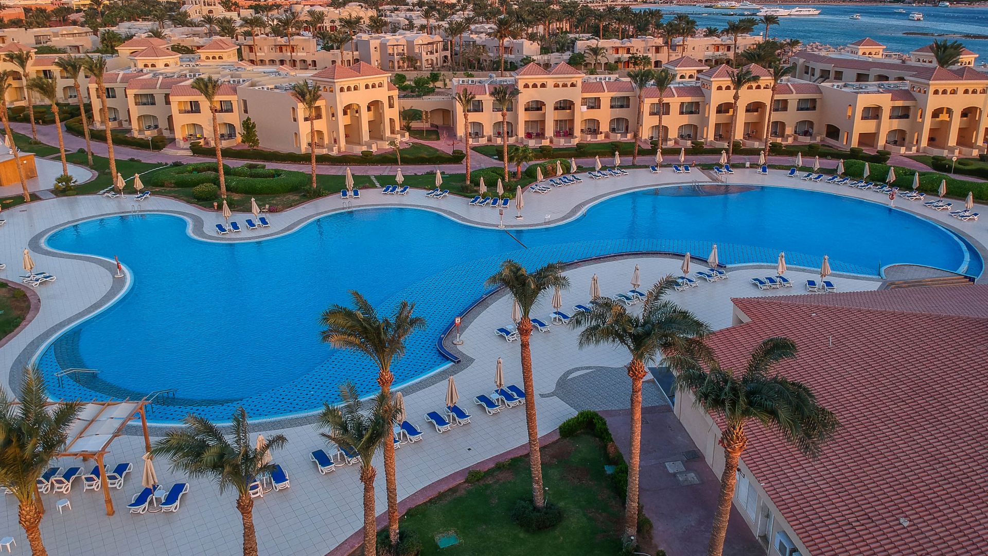 Намира се на 30 км. от летище Хургада, на 35 км. от яхтеното пристанище на Хургада, на брега на морето. Посторен през март 2016 г.