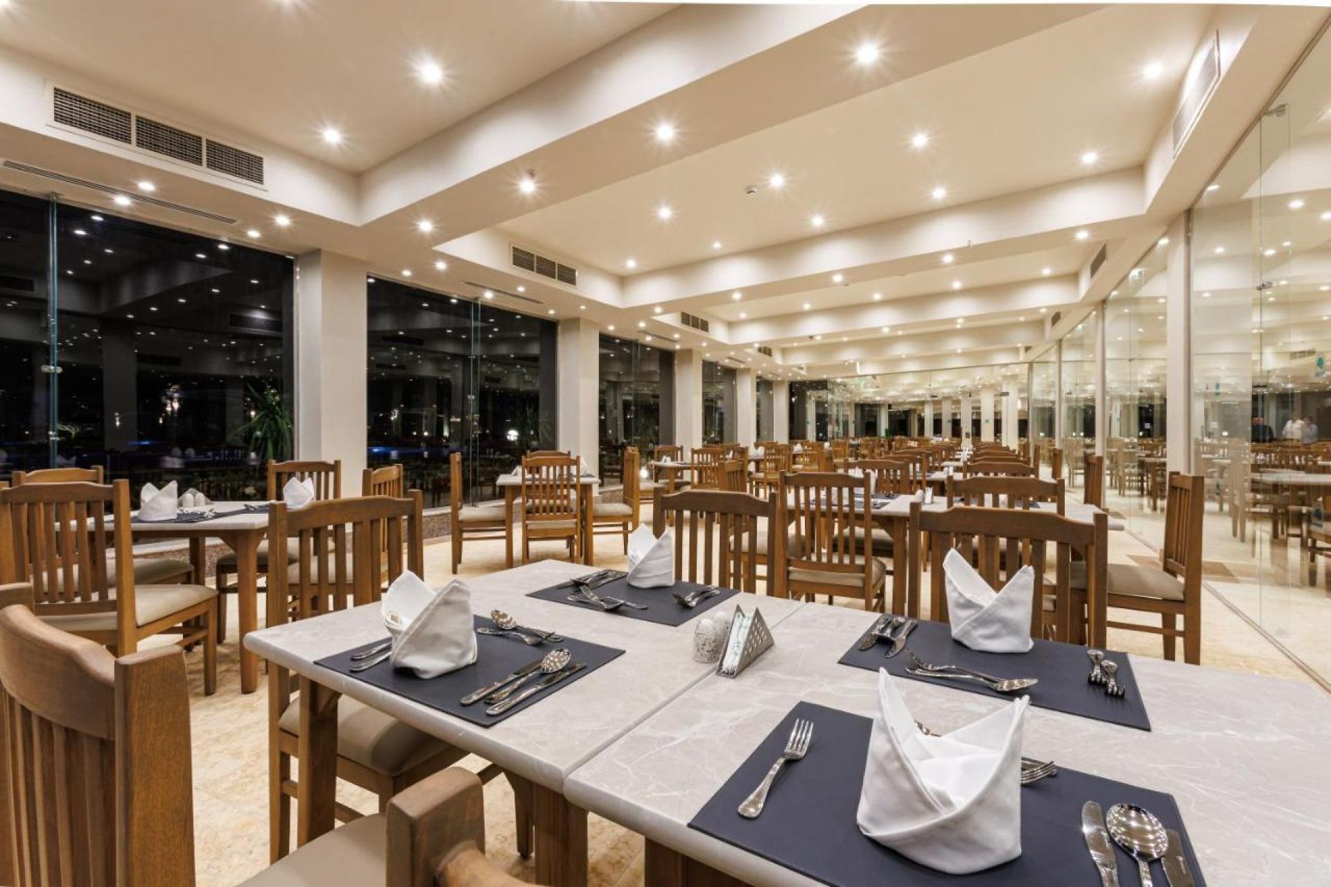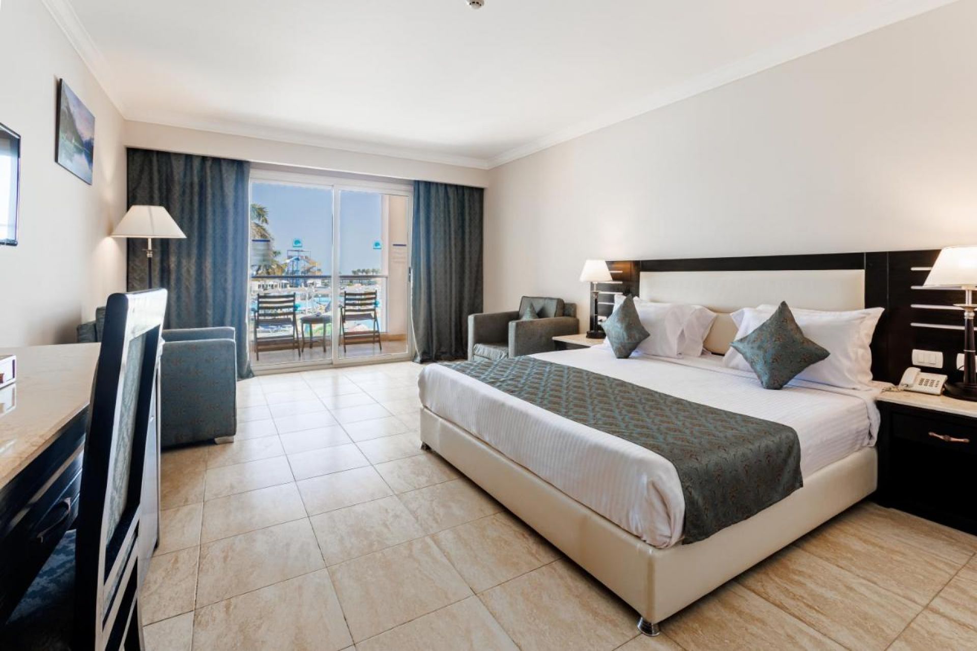 Хотелът разполага с общо 459 стаи, разположени в основна пететажна сграда и вили, от които 140 Standart Sea View rooms (49 m2), 144 Standart Pool View (49 m2), 93 Standart Side Sea view (34 m2), 13 Junior Suites ( едно общо помещение 60 m2), 27 Family room (едно общо помещение 60 м2), 24 Bungalow room (50 m2), 28 Bungalow Family room ( едно общо помещение 60 м2). Всички стаи са оборудвани с климатик, телевизор, телефон, баня с душ, сешоар, сет за чай/кафе, минибар (зарежда се с вода), сейф. Почистване на стаите и смяна на кърпите - всеки ден, смяна на спално бельо – 2 пъти в седмицата.