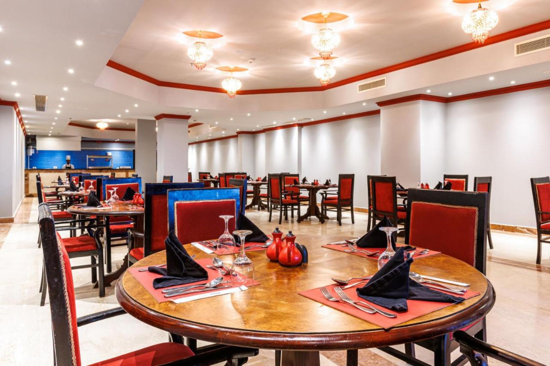 Основен ресторант, 6 а-ла-карт ресторанта, външен снак ресторант, 8 бара, дискотека, 13 басейна, тенис корта (с твърдо покритие), СПА център, 2 конферентни зали, магазини.
