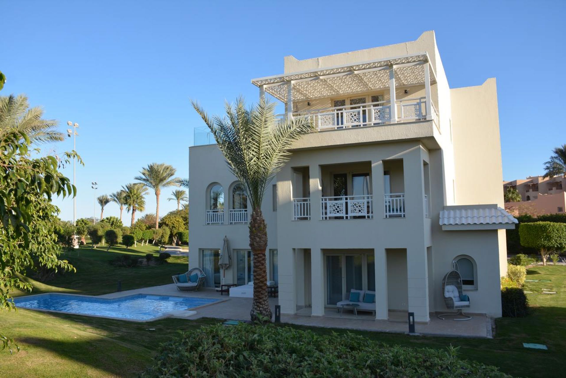 Намира се на 10 км. от летище Хургада, на 14 км. от центъра на Хургада, на брега на морето. Хотелът е с концепция ADULTS ONLY – настаняване на деца под 16 г. не е позволено.
