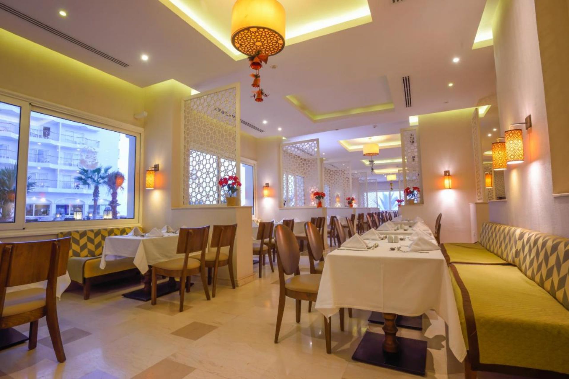 Хотелът разполага с общо 212 стаи, разположени в комплекс, състоящ се от девет 3-етажни сгради, от които Standard rooms (с изглед към басейн или море - 26 м2), Family rooms (с изглед към градина, басейн или море). Всички стаи са оборудвани с климатик, телевизор, телефон, баня с душ, сешоар, минибар (платен), сейф (безплатно), балкон/тераса. Почистване на стаите и смяна на кърпи - всеки ден, смяна на спално бельо - 2 пъти седмично.