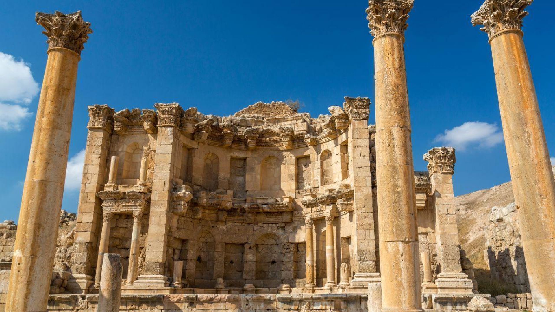 Джераш - едно от най-впечатляващите археологически чудеса на Близкия изток - ви пренася директно в златната епоха на Римската империя. Наричан още „Помпей на Изтока“, този древен град е забележително добре запазен, със своите монументални руини, които разкриват величието и реда на римското градоустройство.
