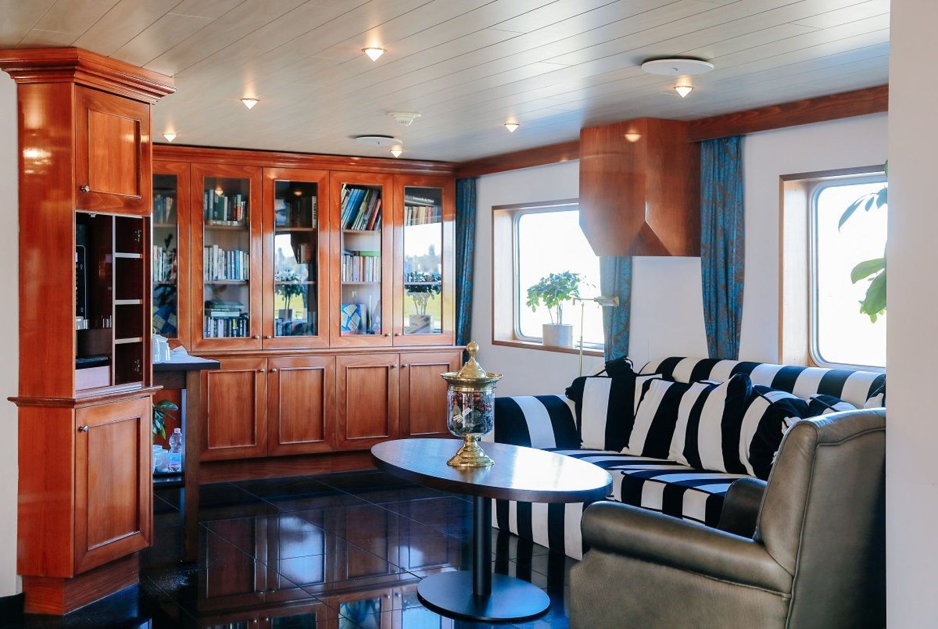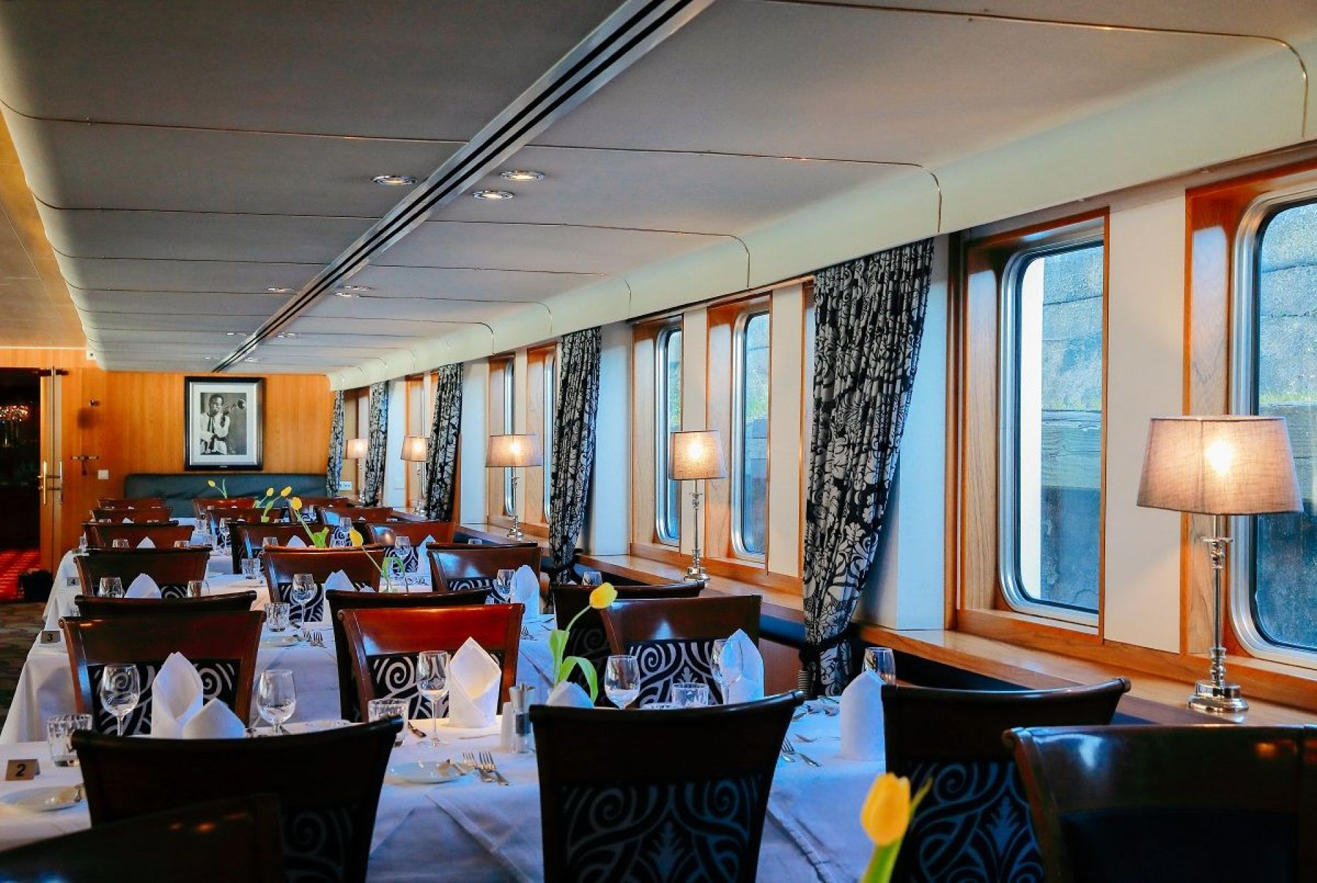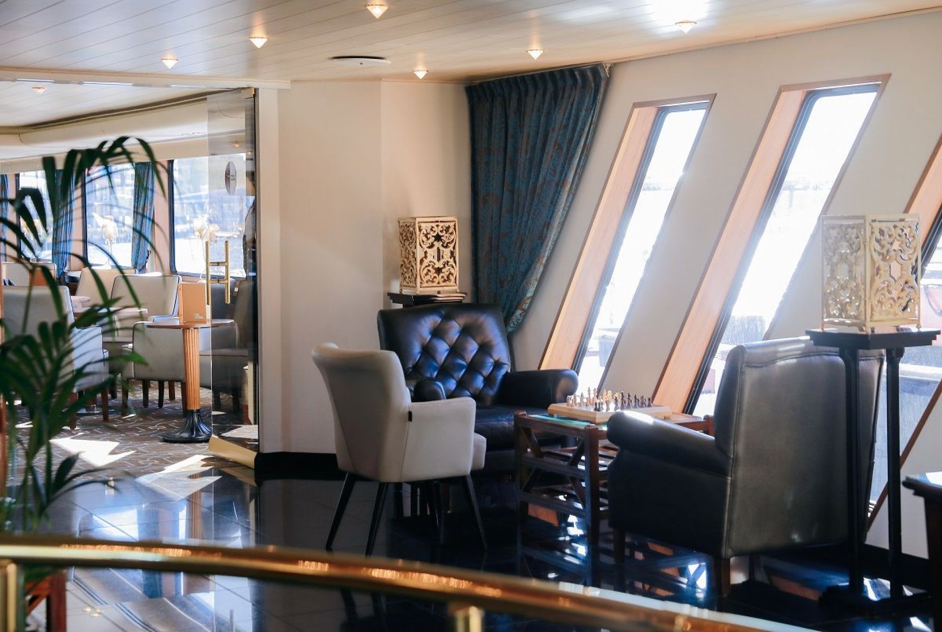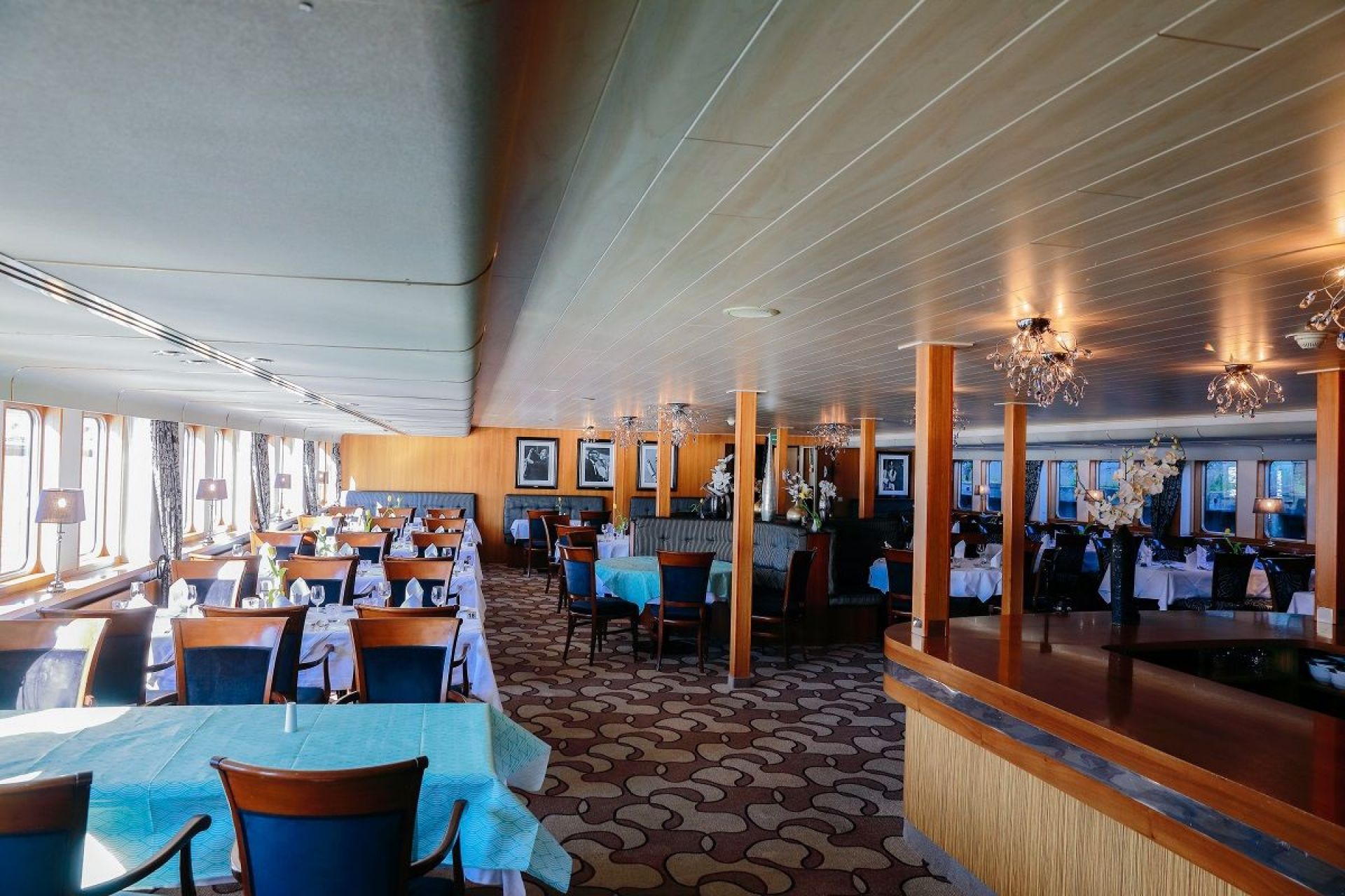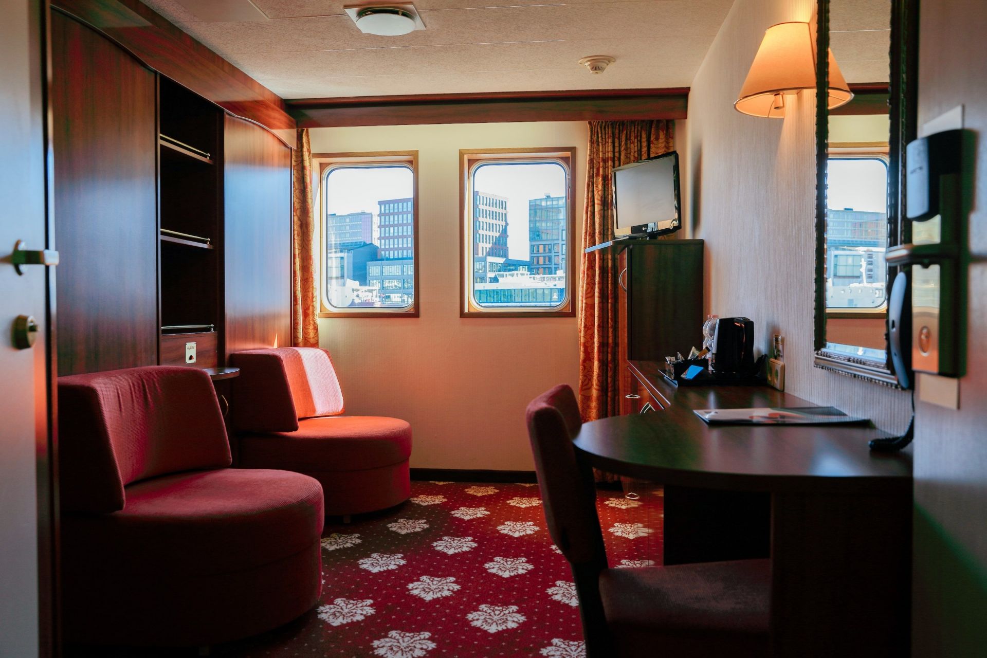 Каютите на основна палуба са с легла, които през деня се вдигат и превръщат в удобни места за сядане. Имат панорамни прозорци.