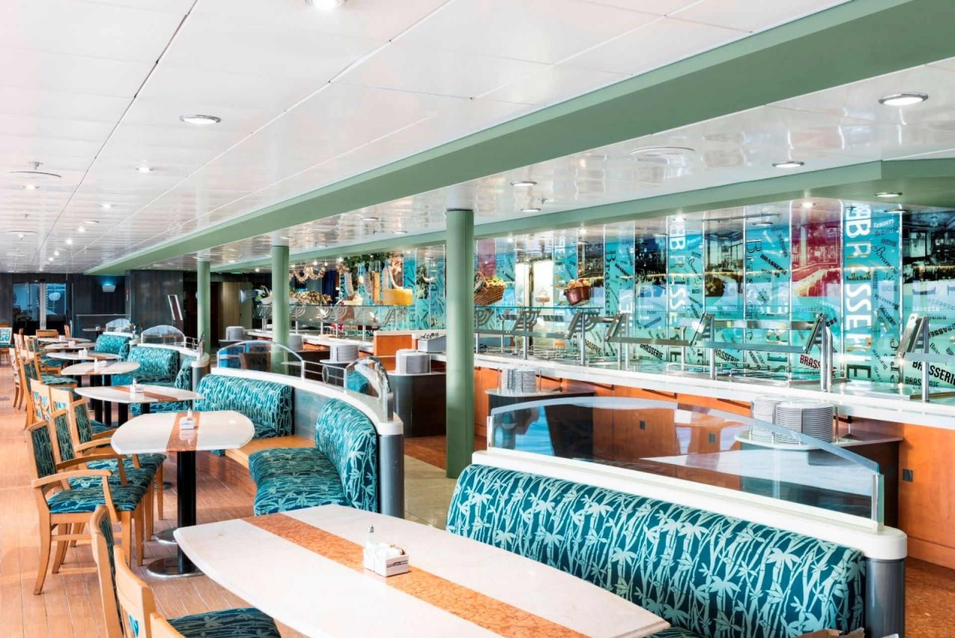 Два основни ресторанта Марко Поло и Ла Пергола и бюфет, включени в цената на круиза, ала карт Сърф и търф ресторант, грил, пица и паста бар.