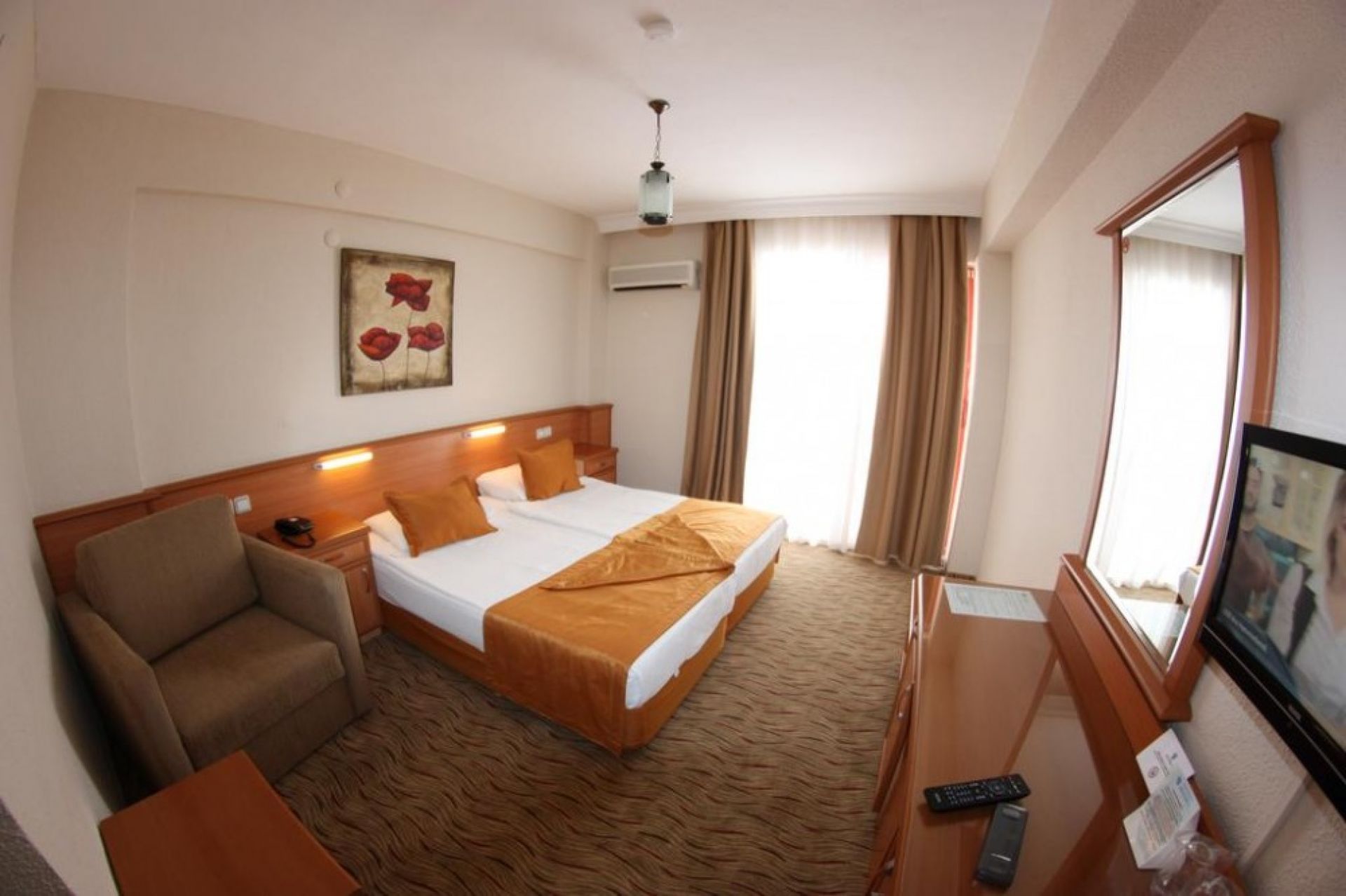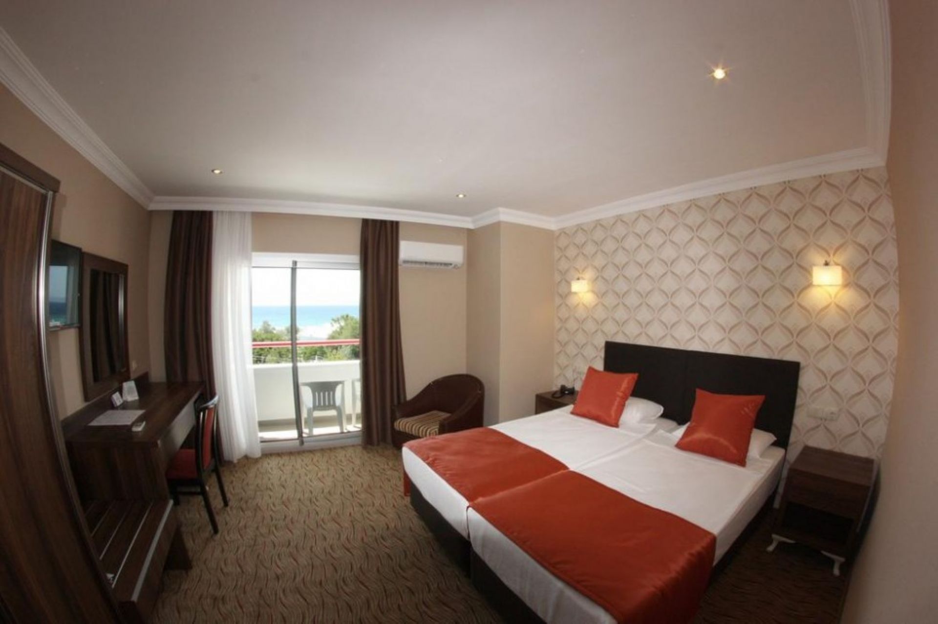 Хотелът разполага с 85 стаи. Всички стаи са оборудвани с климатик, телевизор, телефон, баня с душ, сешоар, мини бар, балкон, част от стаите са с гледка море.. Почистване на стаите - всеки ден, смяна на спалното бельо и кърпите - 2 пъти в седмицата.