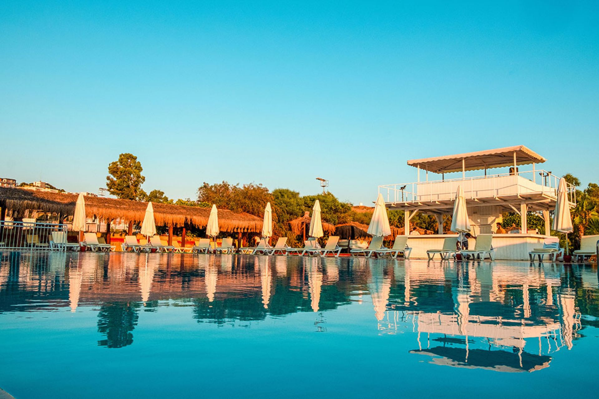 Намира се на 37 км от летище Бодрум, на 3 км от центъра на Бодрум, в района на Гюмбет, на брега на морето. Построен 1994 г. Реновиран 2015 г.