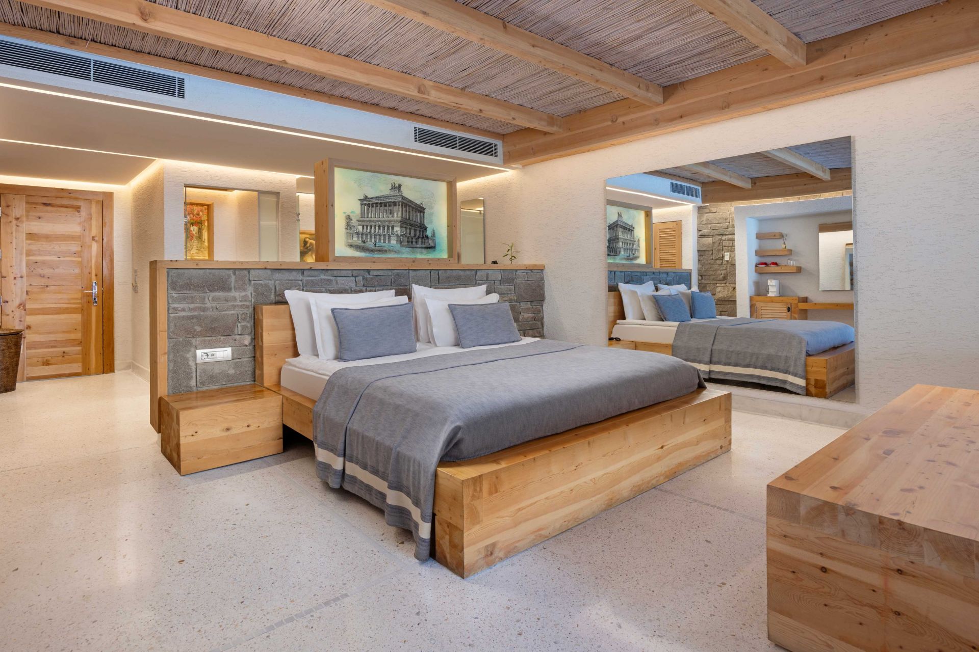 Вили: Exclusive Villa (1-ви етаж: всекидневна, спалня и баня; 2-ри етаж: две спални и две бани, 1 тераса и собствен басейн; всички спални имат балкон, по-богато разнообразие в мини бара, иконом), Superior Villa (1-етаж: кухня, всекидневна, сауна и баня; 2-ри етаж: 4 спални, тераси и собствен басейн, джакузи, маса за вечеря, богато разнообразие в мини бара, иконом – 300 м²), Presidental Villa (3-етажна вила, разположена в градините на хотела, кухня, всекидневна, хамам, сауна на първия етаж, 6 спални, турска баня, собствен басейн, сауна, асансьор, иконом – 530 м²).