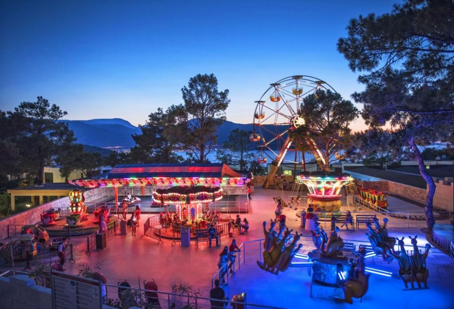 CANDYTOWN LUNA PARK е мястото за неверятно забавления по време на Вашия престой. Паркът представлява комплекс от различни забавления за всички възрасти. Разбира се, не трябва да пропускат и Лунапарка с 9 различни атракции включително виенско колело високо 17 метра, както и детска въртележка, картинг, лабиринт с лазер игри, детско влакче на ужасите и 8D кино. Има мини клуб за деца между 4 и 7 годишна възраст, който може да предложи на малките посетители детски фитнес, арт занимания, мини диско, игрална площадка, детска йога и безброй други забавления. За малко по-големите (на възраст между 8 и 12 години) в макси клуб се предлага търсене на съкровища, оригами, баскетбол, волейбол, водно поло, сумо игри, рали, футбол и още други. Тийнейджърите в хотела могат да посетят предвидения за тях клуб, в който играят тенис на маса, футбол, дартс, търсене на съкровища, игрална зала (playstation 5 и компютърни игри), бинго, баскетбол, кино, уроци и много други. Дино парк с 12 динозаври в реални размери. Най-новите атракциони са тематичния парк Candyland и виенското колело. Работно време в периода 01.05-15.10 от 20.00 до 23:00 (може да варират спрямо метеорологичните условия).