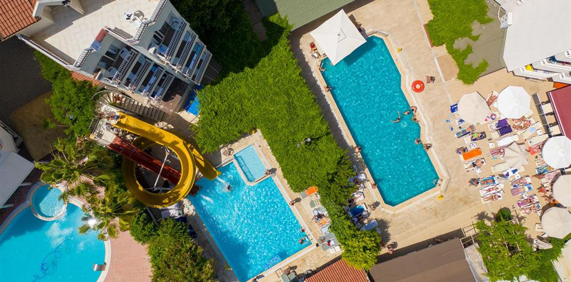 Основен ресторант, а-ла-карт ресторант (срещу допълнително заплащане), бар, 2 открити басейна (80м2 и 100м2), 2 водни пързалки.