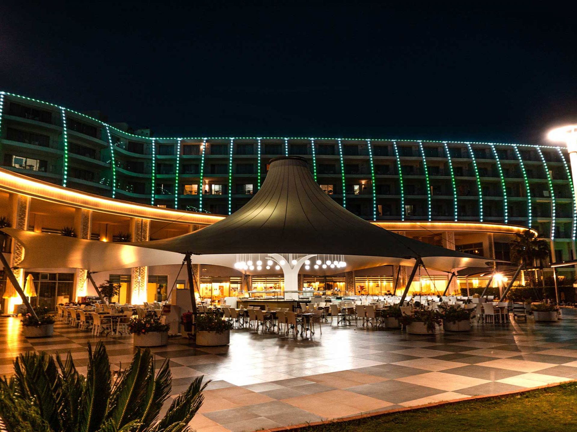 Основен ресторант, 3 а-ла-карт ресторанта (италиански, рибен и туски), детско меню, 4 бара, открит басейн 1200 м2, водна пързалка, релакс басейн, детски басейн, закрит басейн, анимация, вечерни шоу програми, жива музика, детски клуб (4-12г.), СПА център, конферентни зали.