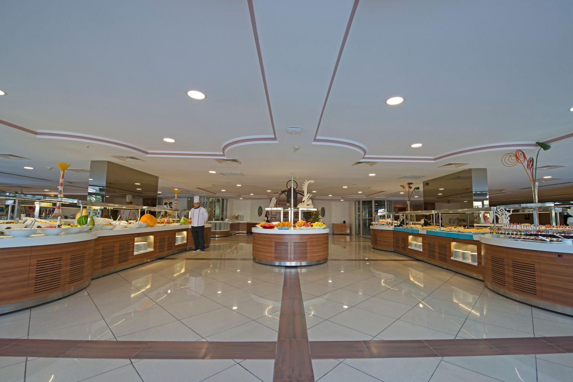 Основен ресторант, а-ла-карт ресторант (интернационална кухня - платен), 6 бара, 3 открити басейна ( 1100 м² и 650 м² )и 1 закрит басейн, аквапарк, магазини, СПА център.