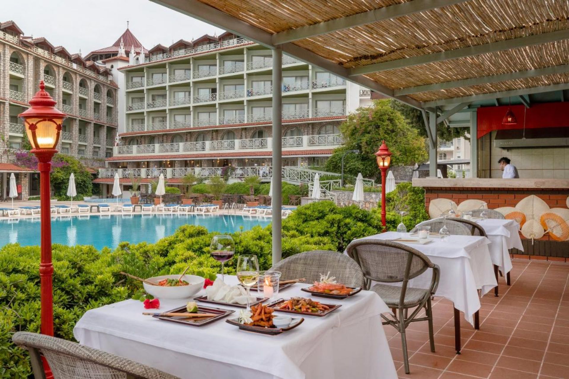 Основен ресторант, 2 а-ла-карт ресторанта (срещу заплащане), 3 бара, 1 открит басейн (600м²) , амфитеатър, магазини, СПА център, 5 конферентни зали, паркинг.