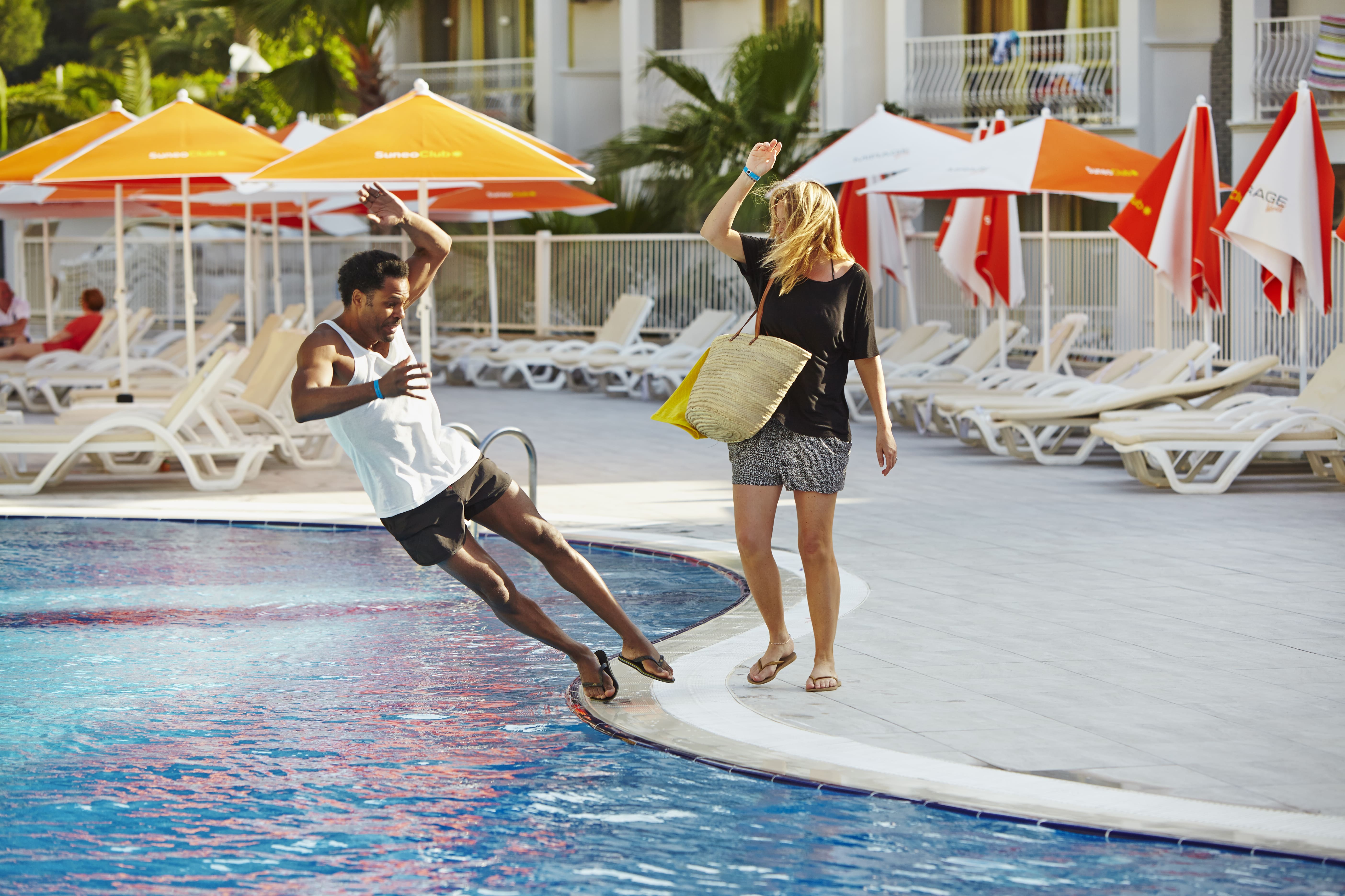 Основен ресторант, 4 бара, 4 басейна (основен, аква басейн с 5 водни пързалки, релакс басейн, плувен басейн), 3 детски басейна, фитнес център, амфитеатър, паркинг.