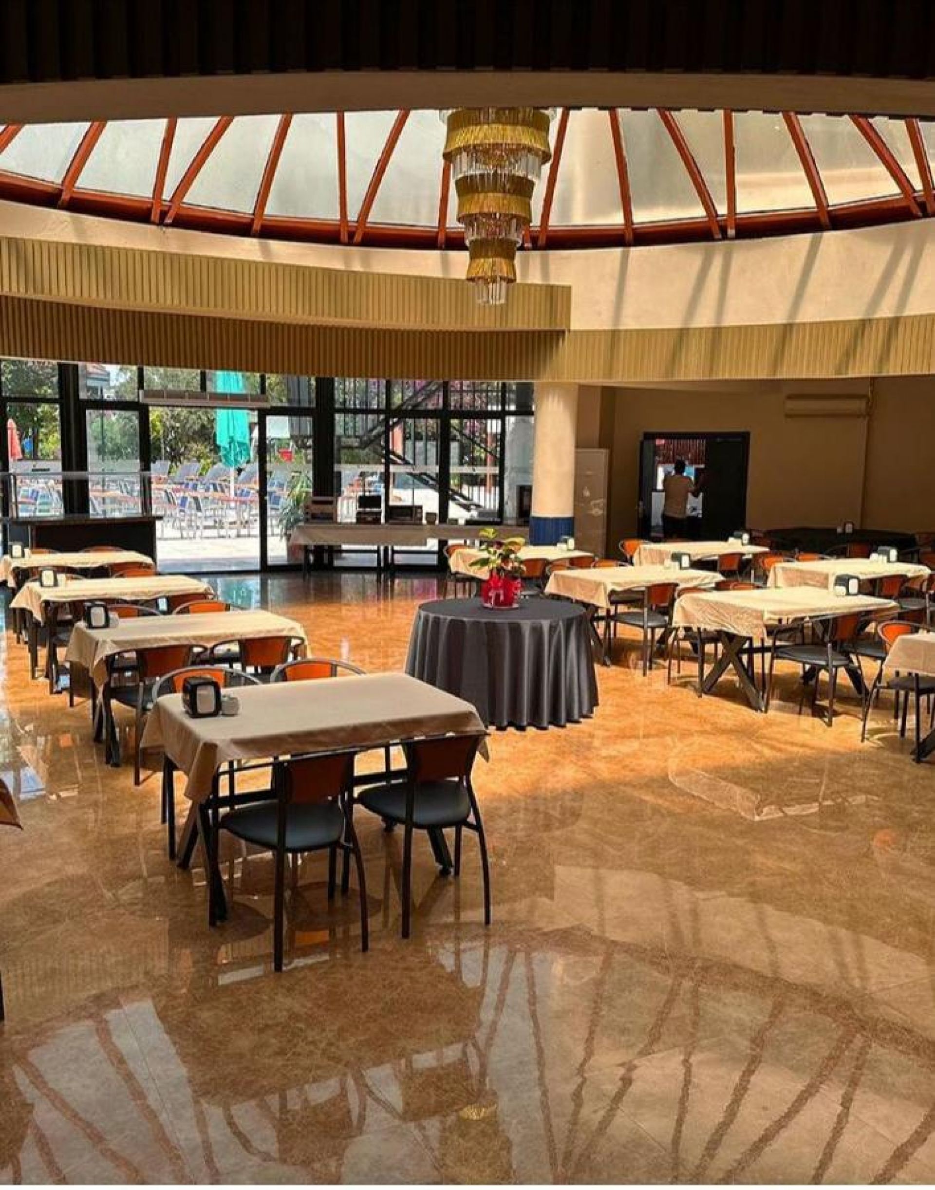 Основен ресторант, 2 бара (на басейна и в ресторанта), открит басейн, закрит басейн.