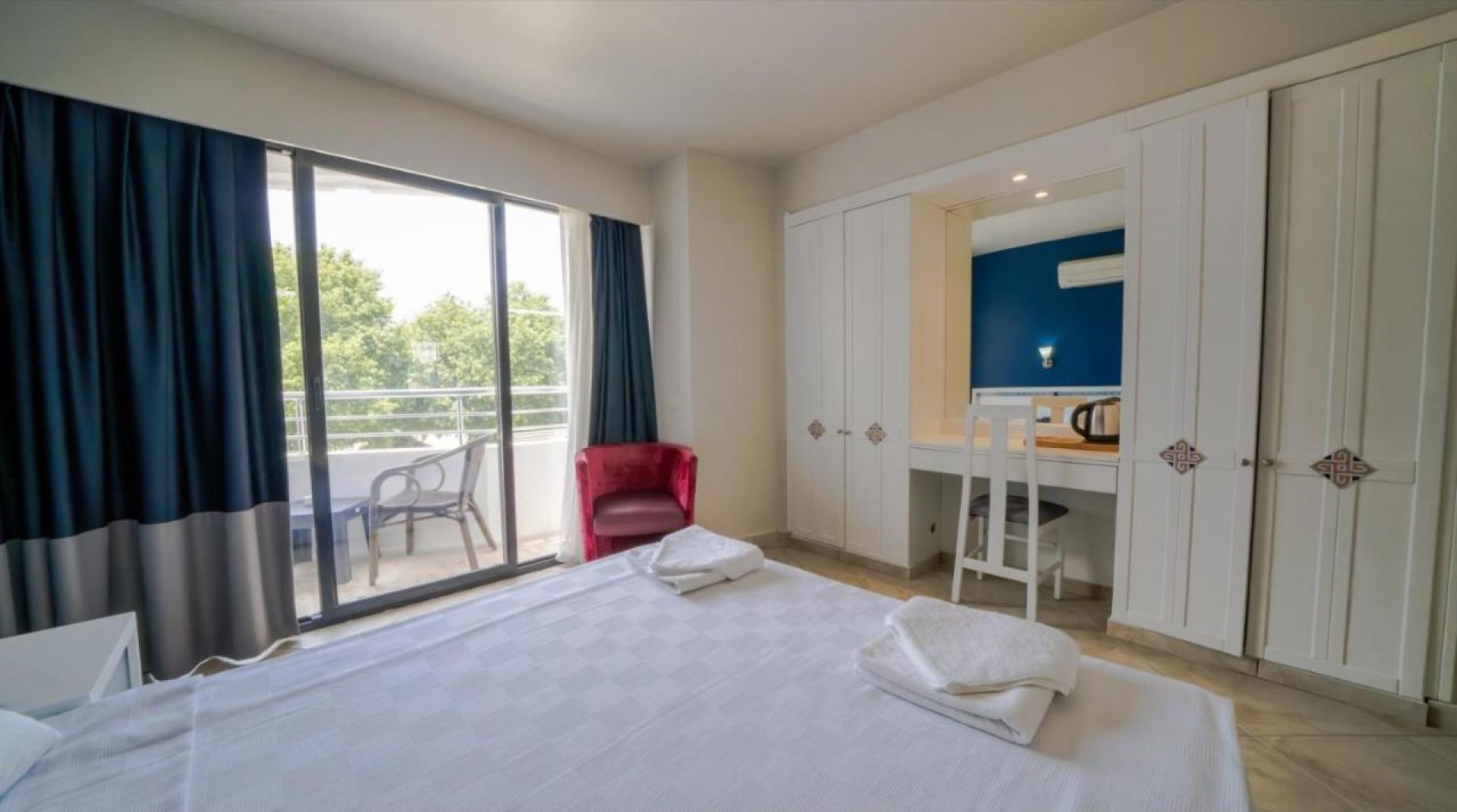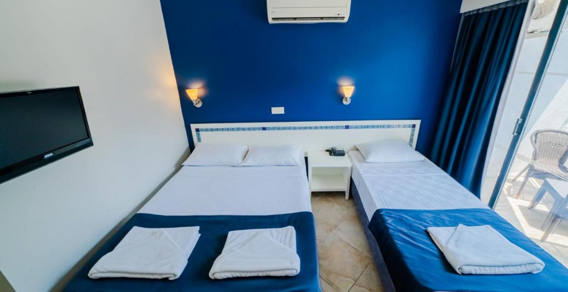 Хотелът разполага с 120 стаи- климатик, телевизор, телефон, мини бар (срещу заплащане), сейф (срещу заплащане), баня с душ, сешоар, балкон. Почистване настаите- всеки ден, смяна на бельото- 3 пъти в седмицата.