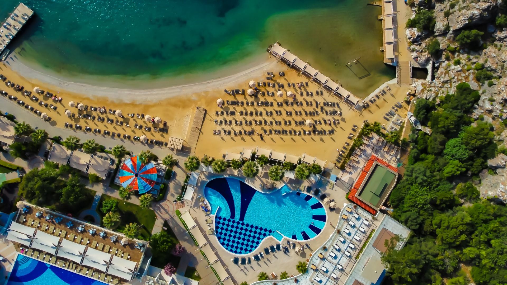 Оновен ресторант, 2 а-ла-карт ресторанта (с предварителна резервация, съгласно концепцията на хотела), 6 бара, дискотека, сладкарница, 2 открити басейна, закрит басейн, детски басейн, водни пързалки, аквапарк, амфитеатър, магазини, СПА център, конферентна зала, паркинг.