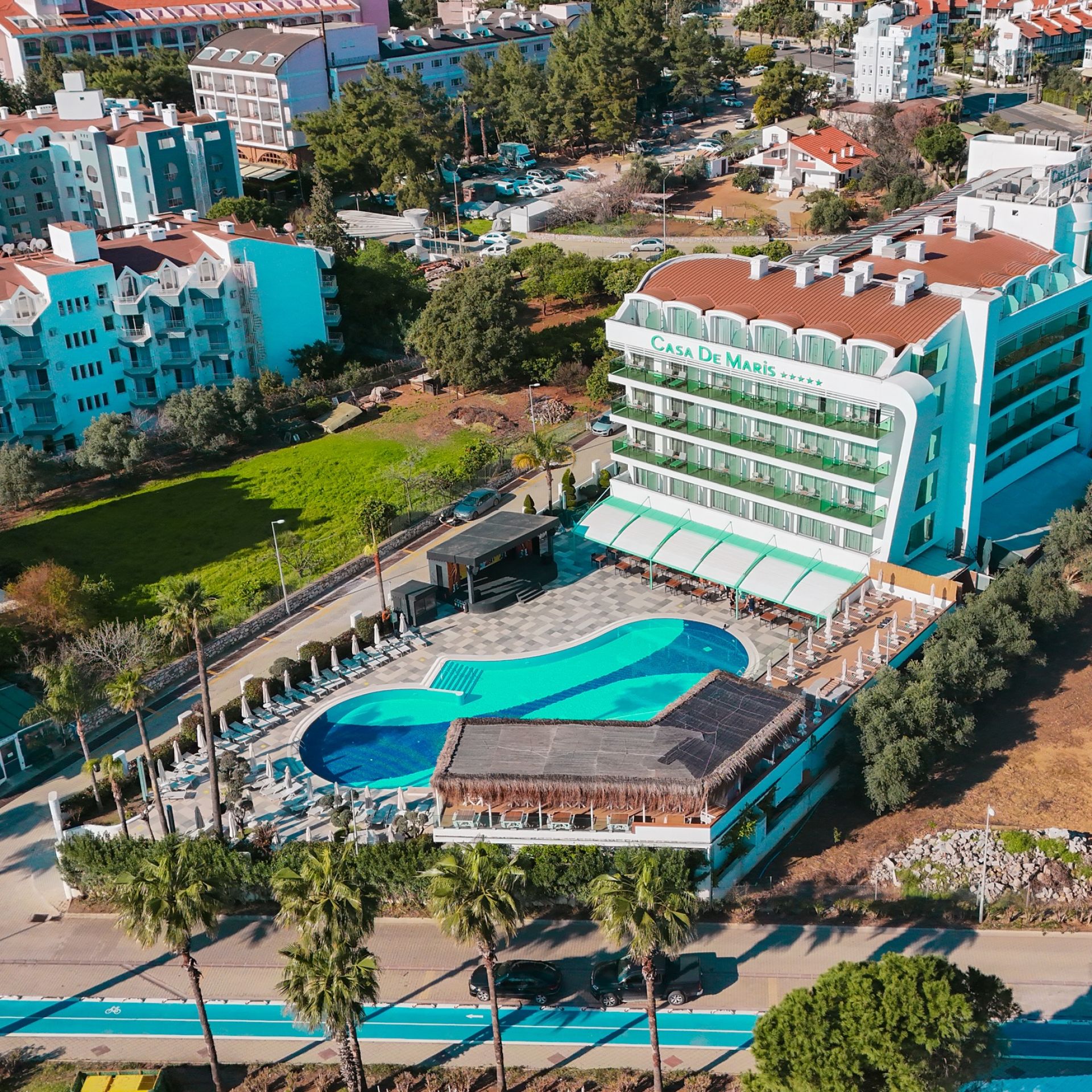 Намира се на 90 км от летище Даламан, на 130 км от летище Милас/Бодрум, на 5 км от центъра на Мармарис, на 10 м от морския бряг. Построен през 2012г., на обща площ от 9,500м2. Реновиран 2025г.