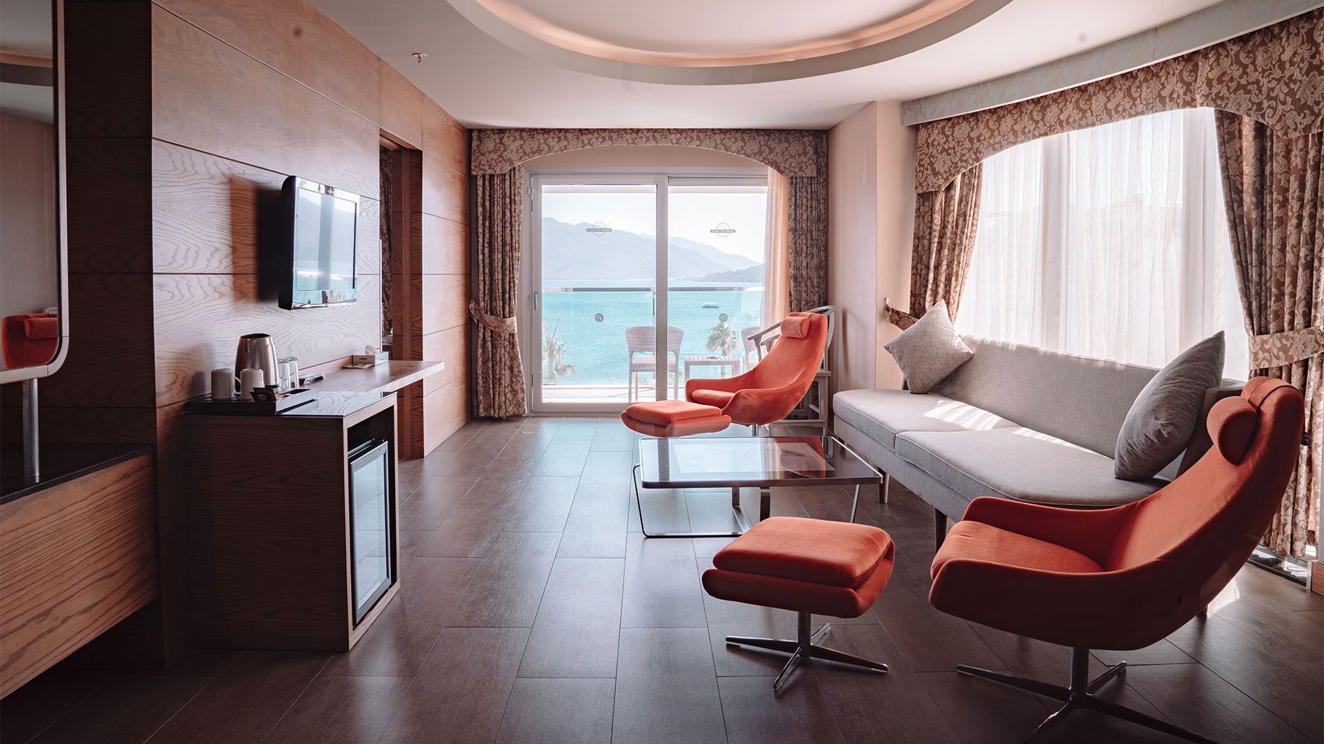 Хотелът разполага със 189 стаи, от които Standard rooms land/ side sea view/ sea view (26 м2). Всички стаи са оборудвани с климатик, телевизор, телефон, баня с душ, сешоар, сет за чай/кафе, минибар (зарежда се ежедневно - безплатно), сейф (безплатен). Почистване на стаите и смяна на кърпите – всеки ден, смяна на спалното бельо – 3 пъти в седмицата.
