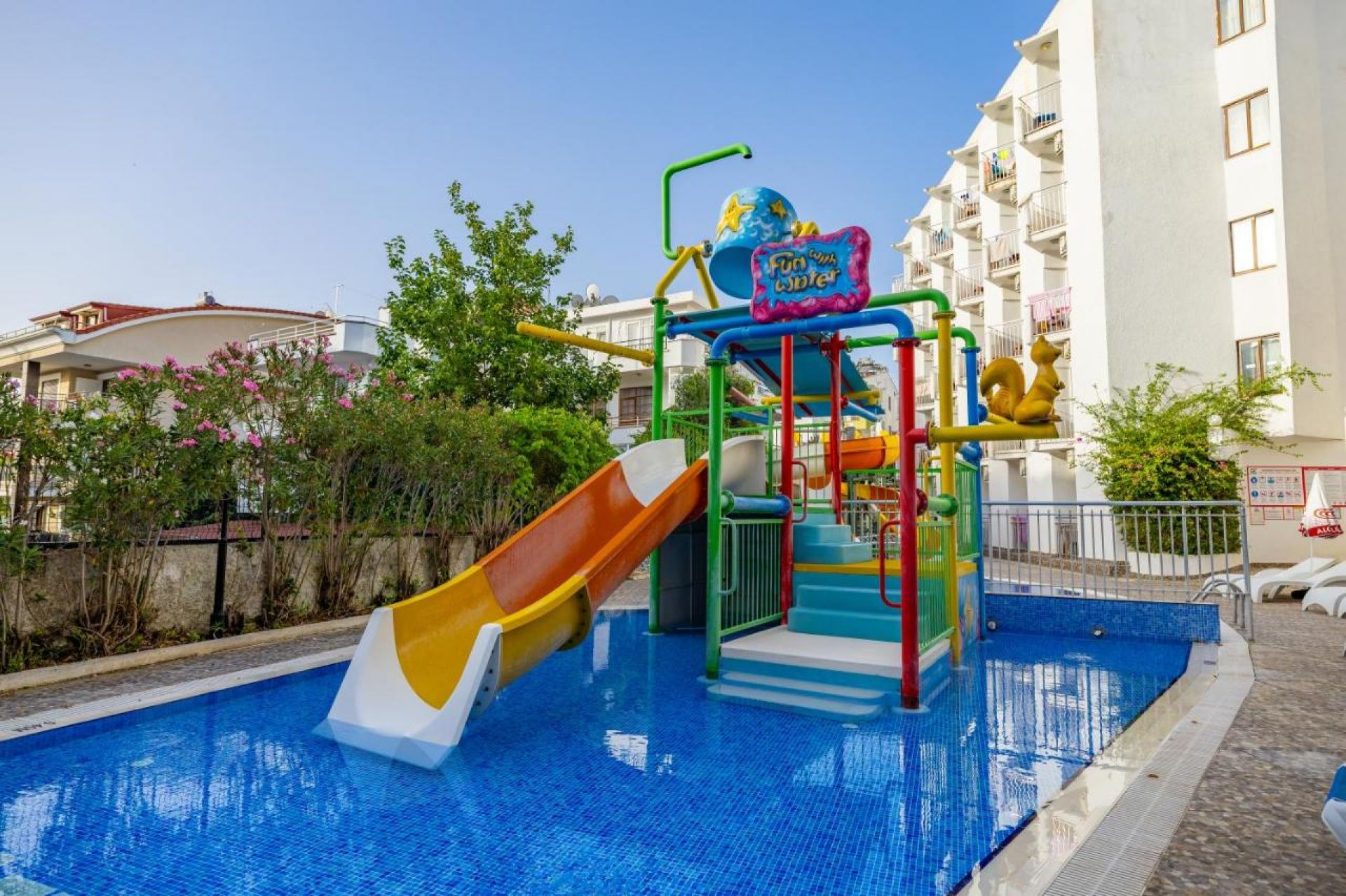 За децата: детски басейн, водна пързалка, мини клуб, детска площадка.