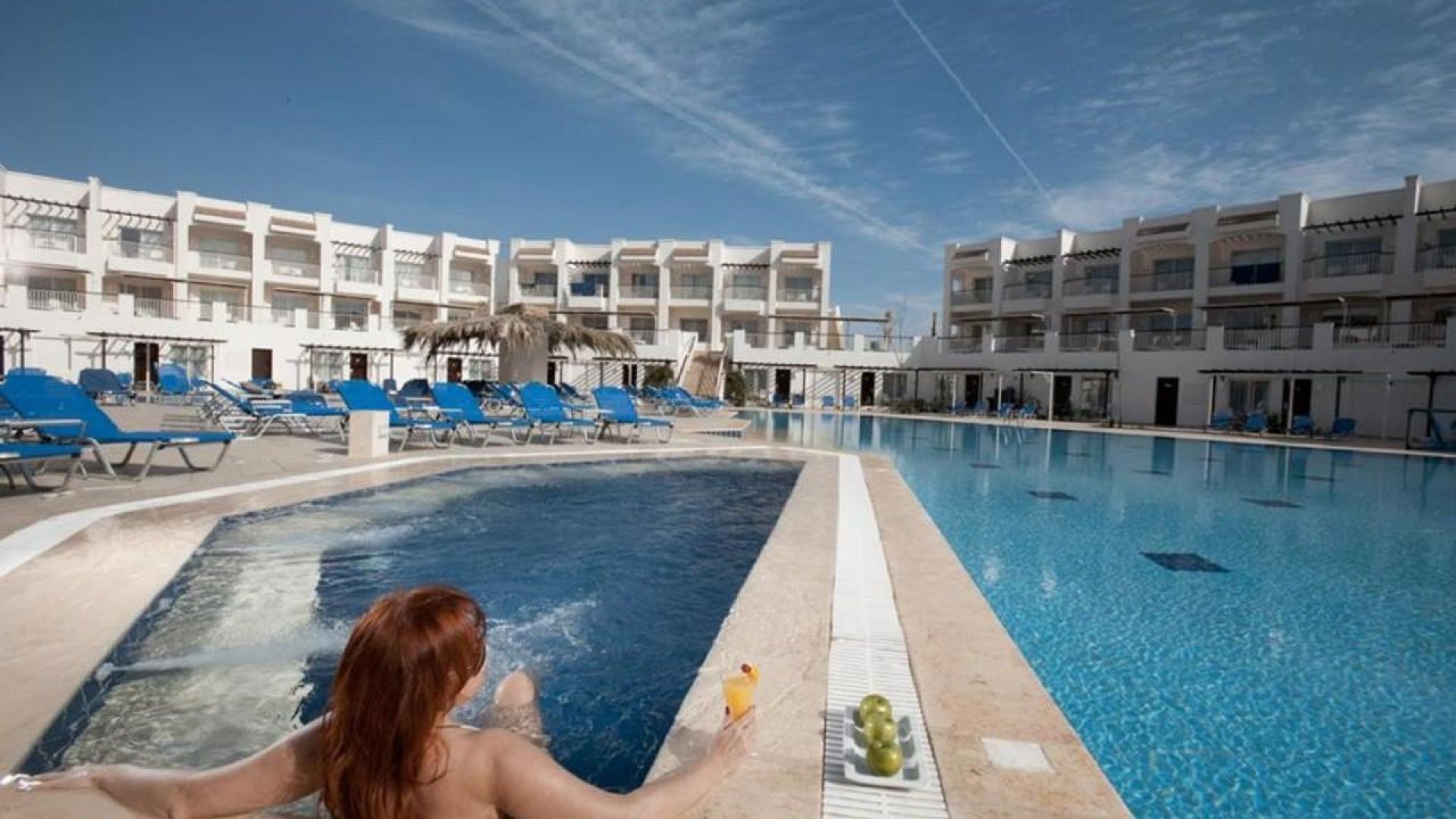 Има фитнес център и един басейн с бар.