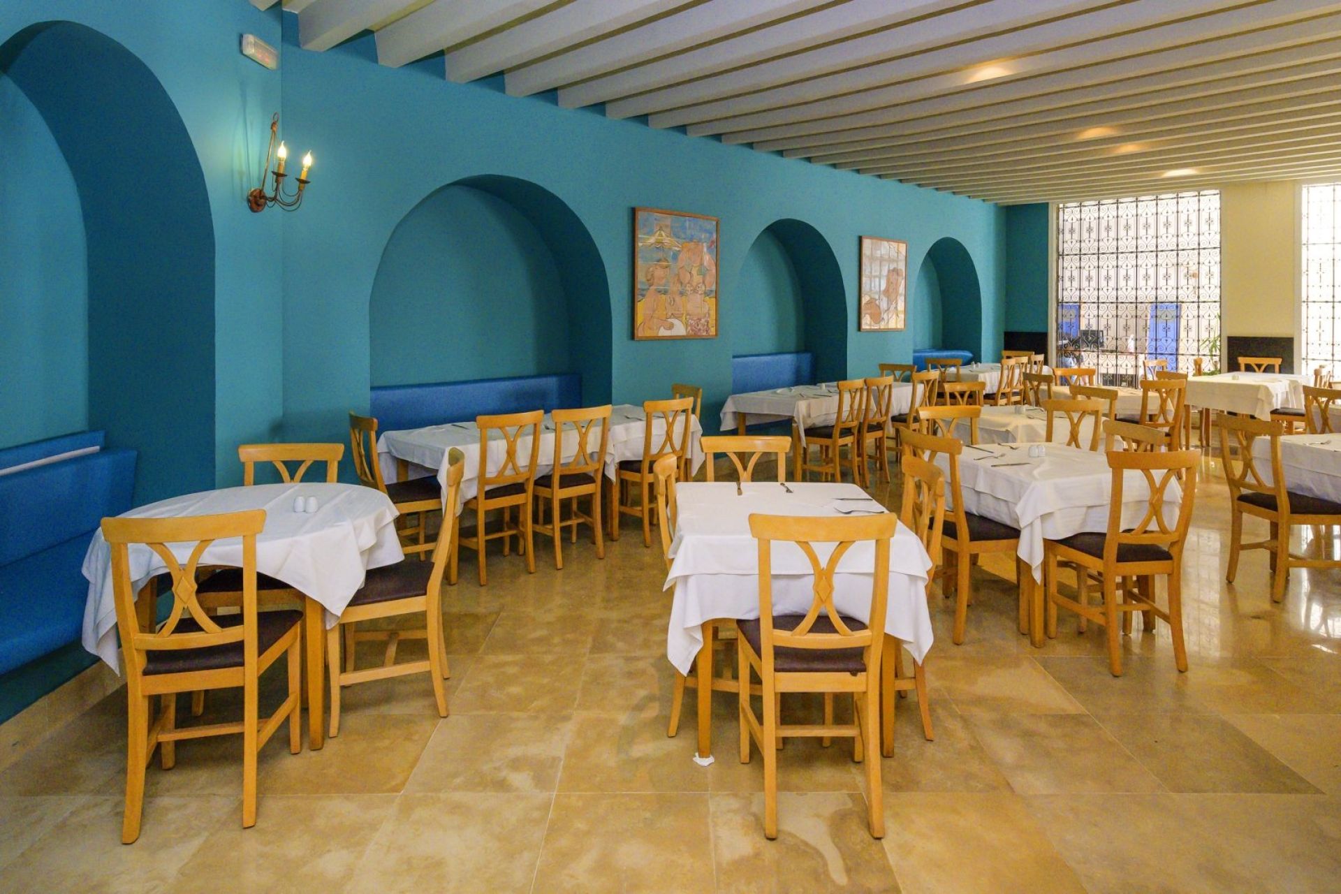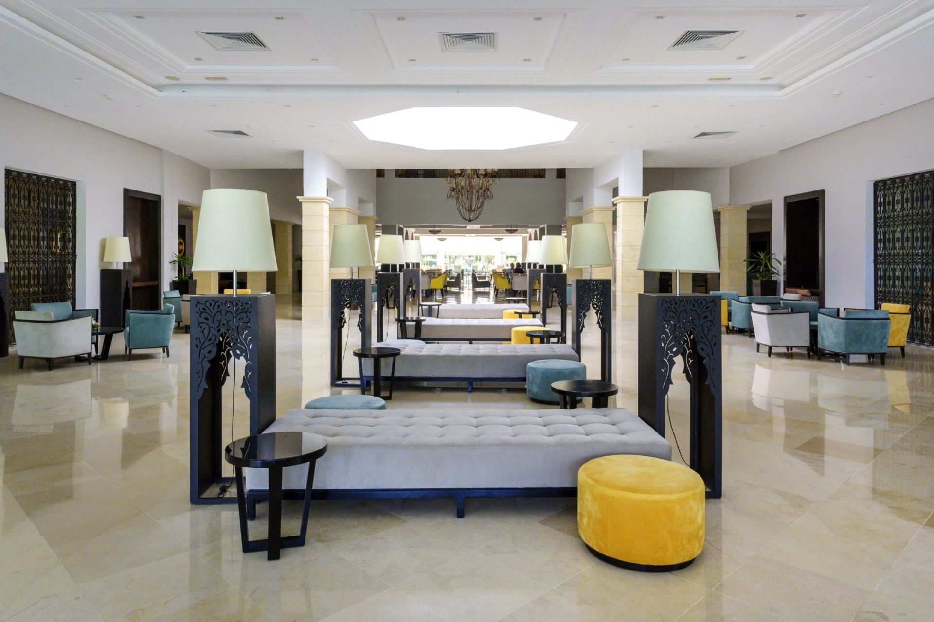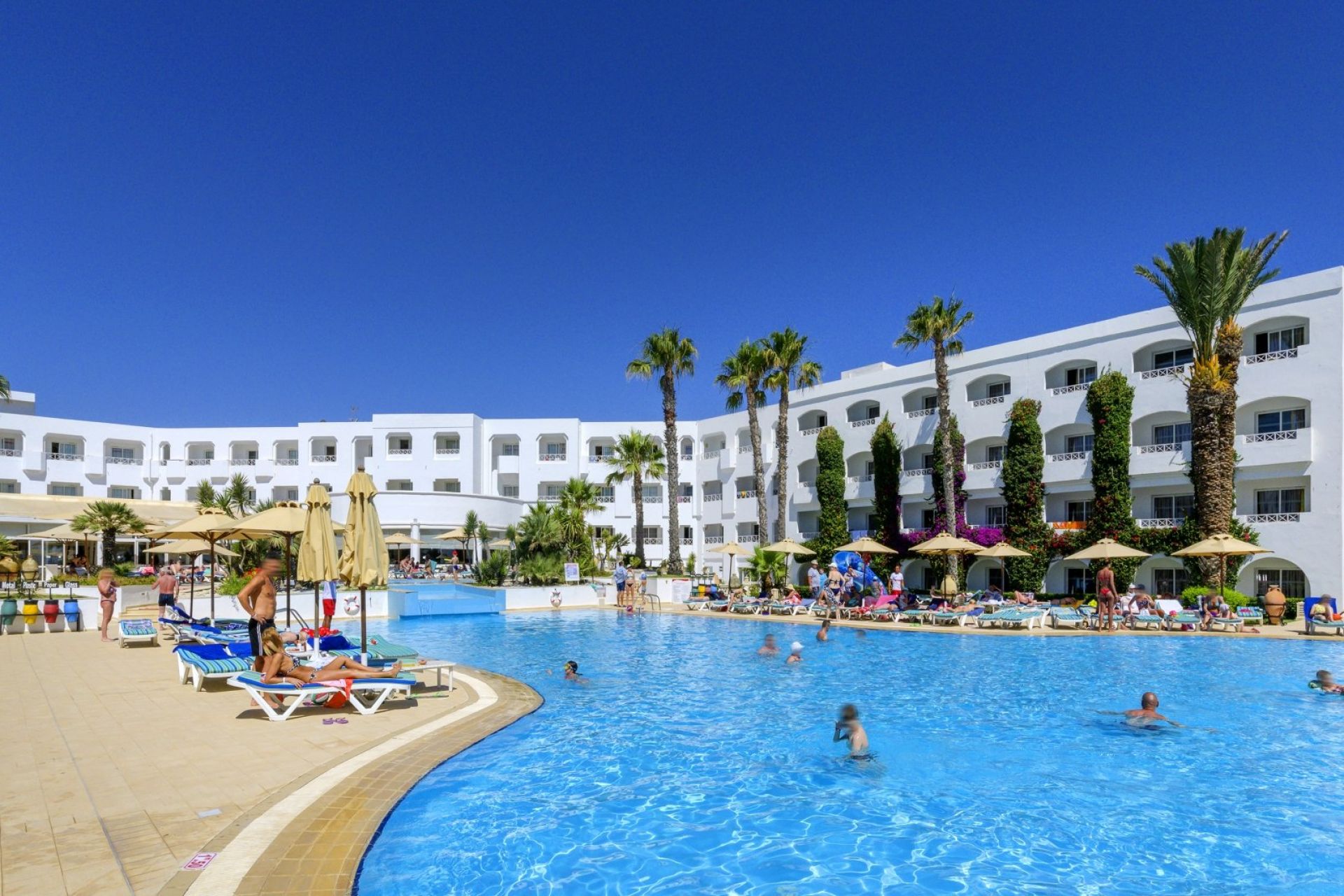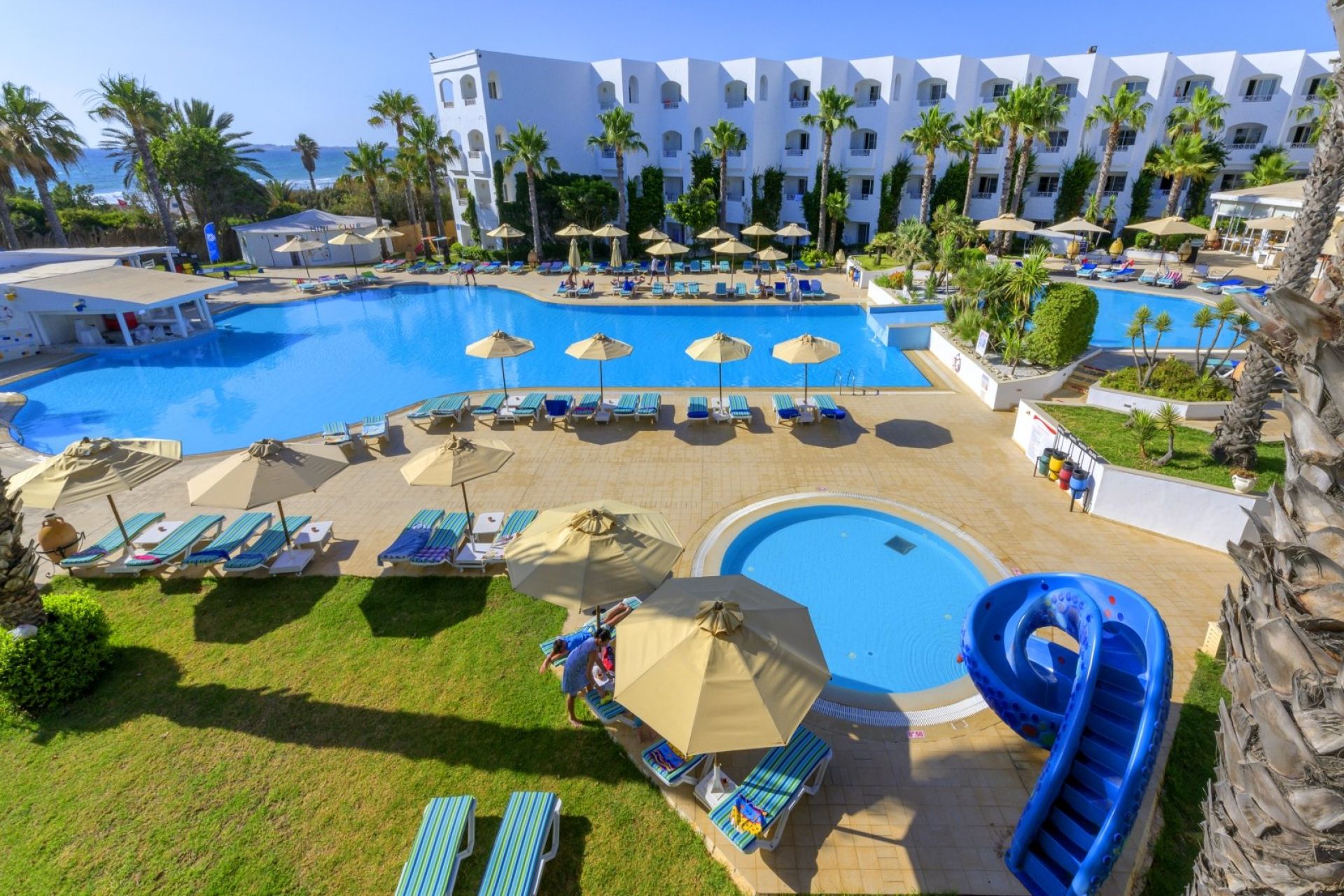 Основен ресторант Thusdrus, 2 а ла карт ресторанта - един с интернационална кухня и втори на плажа, барбекю ресторант (едно безплатно посещение на престой, след предварителна резервация), лоби бар, бар басейн, мавританско кафене, 2 открити басейна, закрит басейн, вътрешен басейн с морска вода в таласо центъра, 5 водни пързалки за възрастни и 1 за деца, анимация, Wi-Fi в лобито, общи части и стаите, сувенирен магазин, обмяна на валута, паркинг.