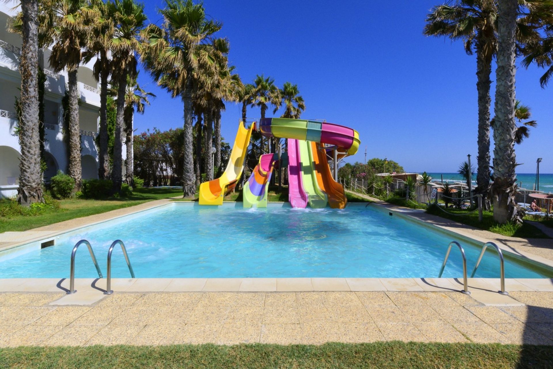 Безплатни услуги: аеробика, водна гимнастика, тенис корт, тенис на маса, мини голф, боча, водно поло, дартс, стрелба с лък, плажен волейбол, мултифункционално игрище (мини футбол, хандбал и баскетбол).