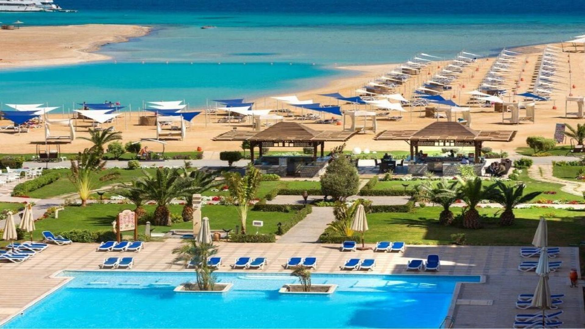 Собствен пясъчен плаж със залив и 3 плувни басейна, включително 1 за деца с чадъри, шезлонги с матраци, плажни огради за защита от вятъра, обслужване от бара, спасители на басейна и на плажа, кърпи за плажа и басейна, табели около басейна;