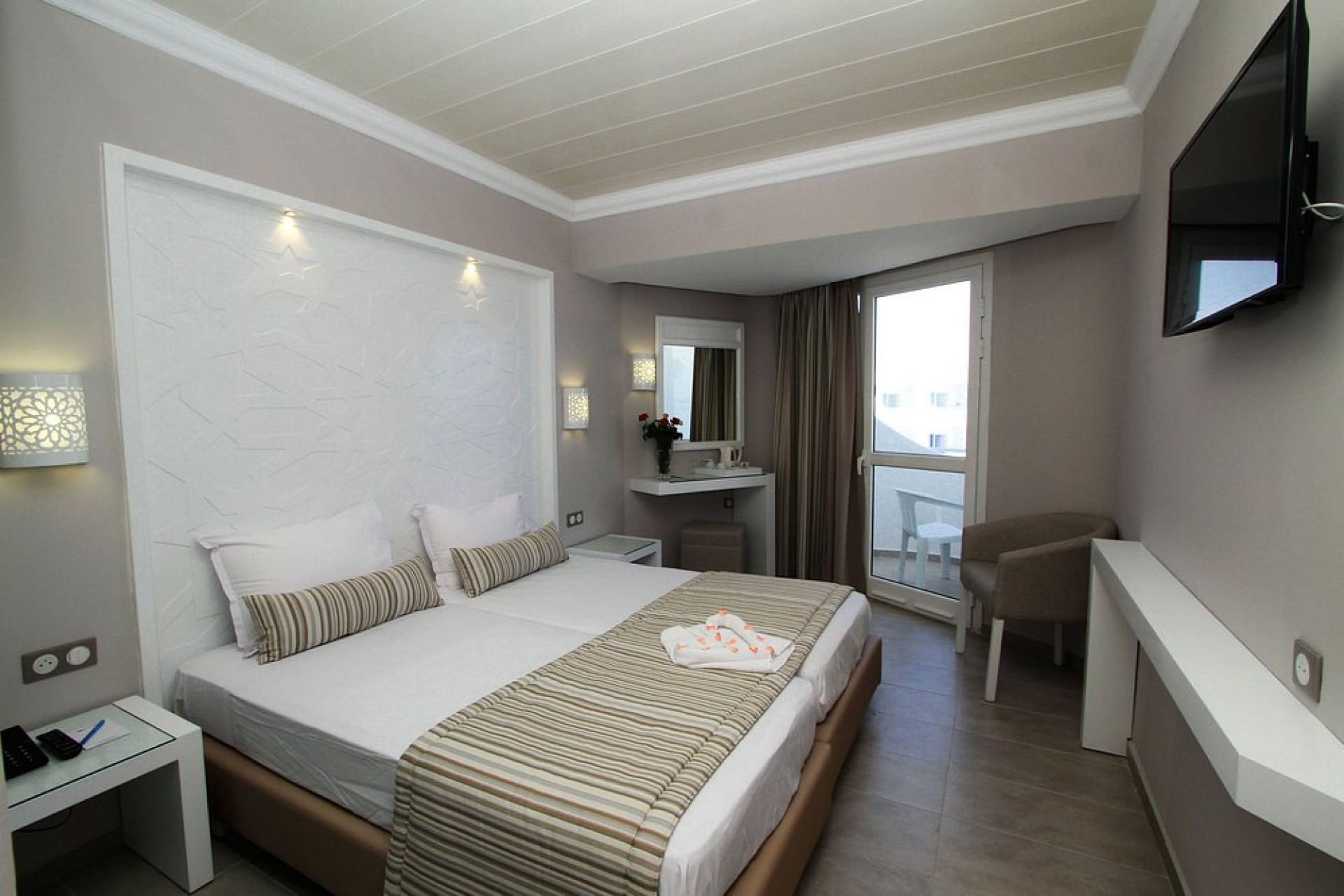 Хотелът разполага с 1005 стаи, всички реновирани, разположени в три сгради с асансьори - Standard Renovated Room (23 кв.м), Sea View Room (23 кв.м), Connected Renovated Room (46 кв.м., представляват две Standard Renovated Room с междинна врата между тях) и Family Room (46 кв.м). Promo rooms имат по-нисък стандарт от стандартна стая, като примерно без изглед, специфична локация с нисък етаж, без балкон, по-малък размер и подобни. Всички стаи са оборудвани с климатик, телевизор, Wi-Fi, балкон, собствена баня с душ или вана. Почистване на стаите - всеки ден.