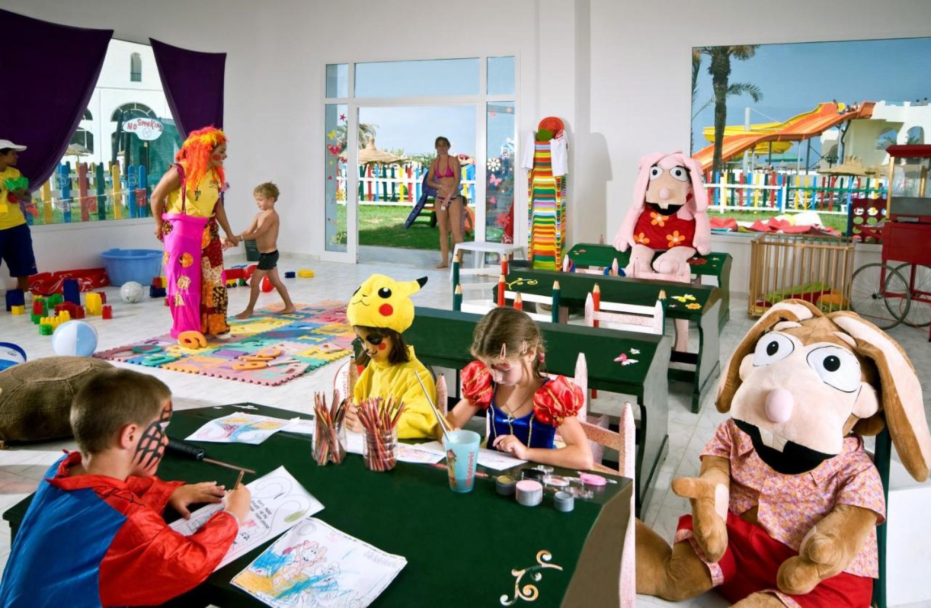 За децата: детски басейн с мини пързалки, втори детски басейн, детска площадка, мини клуб (4 -12 год.) д), бебешка кошара (безплатно, след предварителна заявка, според наличността), детски столчета в ресторантите.