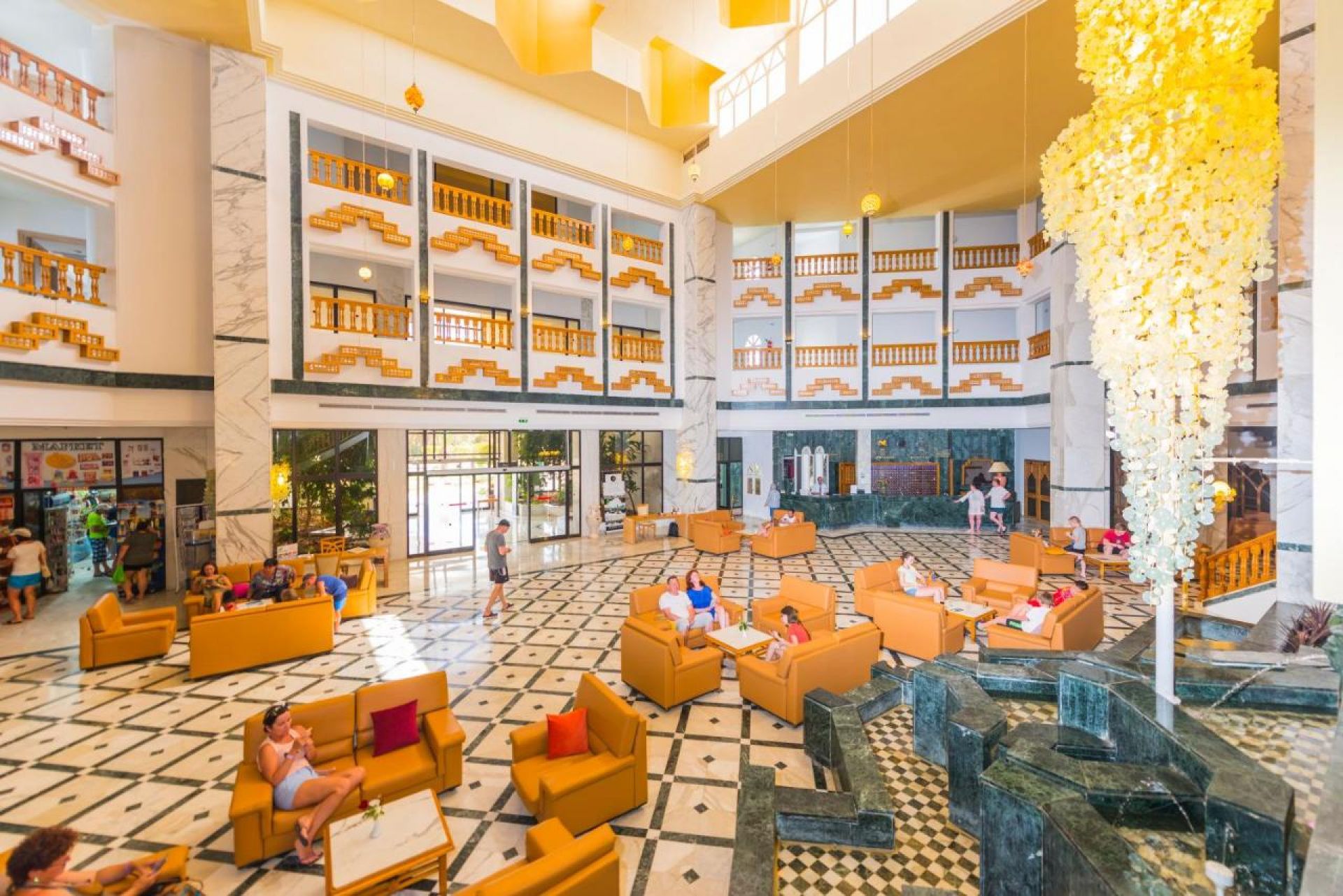 Oсновен ресторант, а ла карт ресторант с италианска кухня (срещу заплащане/с предварителна резервация, съгласно концепцията на хотела/1 безплатно посещение при минимум 7 нощувки), снек ресторант на плажа, 4 бара, мавританско кафене (срещу заплащане), 2 открити басейна, закрит басейн (отопляем), водни пързалки, СПА център, магазини, конферентна зала, 2 тенис корта, анимация, денонощна рецепция, обмяна на валута.