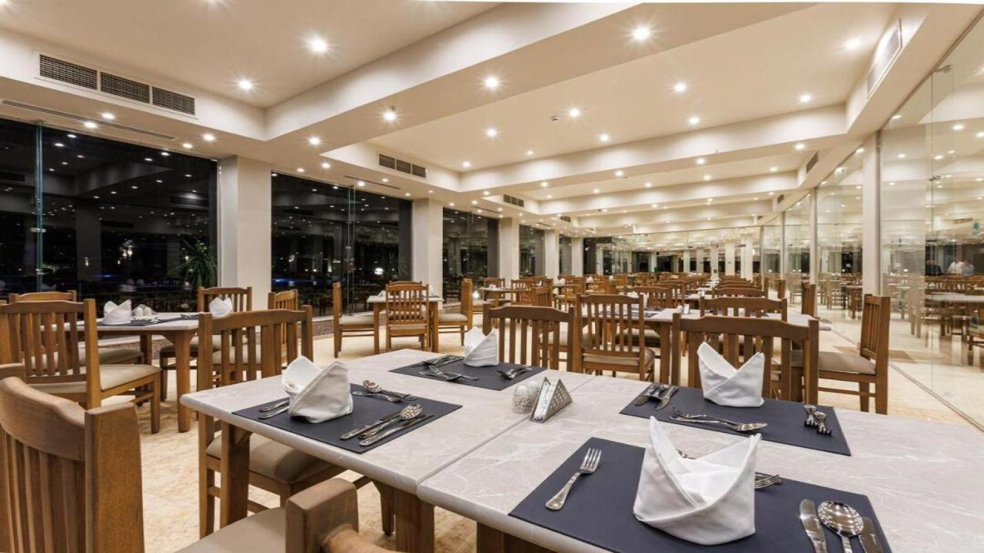 - Основен ресторант – интернационален бюфет с разнообразие от салати, меса, вегетариански опции и тематични вечери