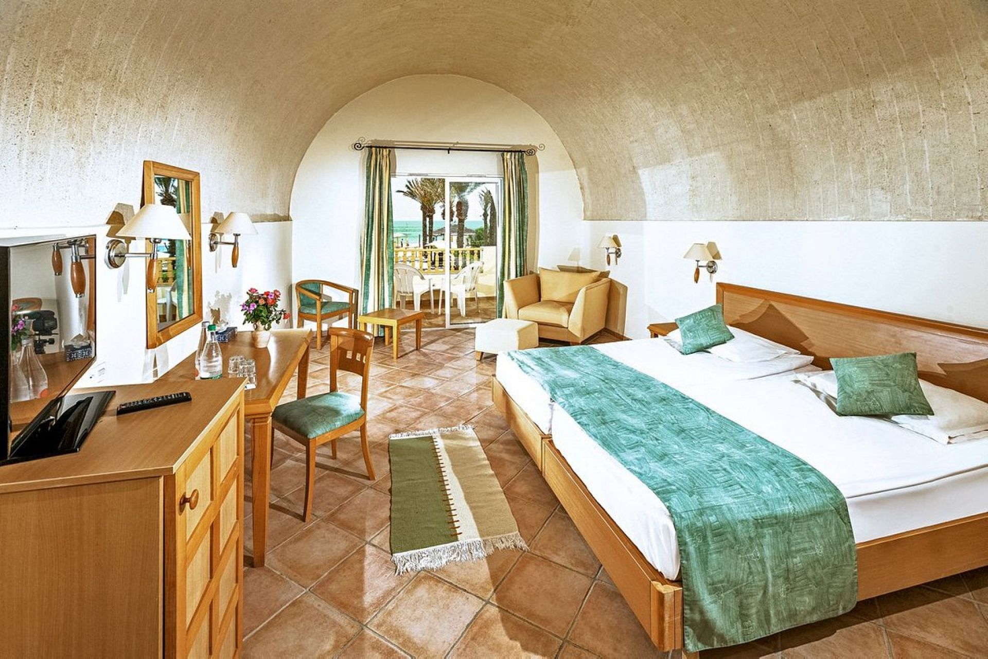 Хотелът разполага с общо 321 стаи, разположени в 5 триетажни сгради с асансьори и едноетажни бунгала - Standard Room (26 м2), Standard Room Sea/Pool View (26 м2), Connected Room (2х28 м2, реновирани стаи, представляват две двойни стаи със свързана врата), Family Room (48 м2), Bungalow Superior (36 м2).